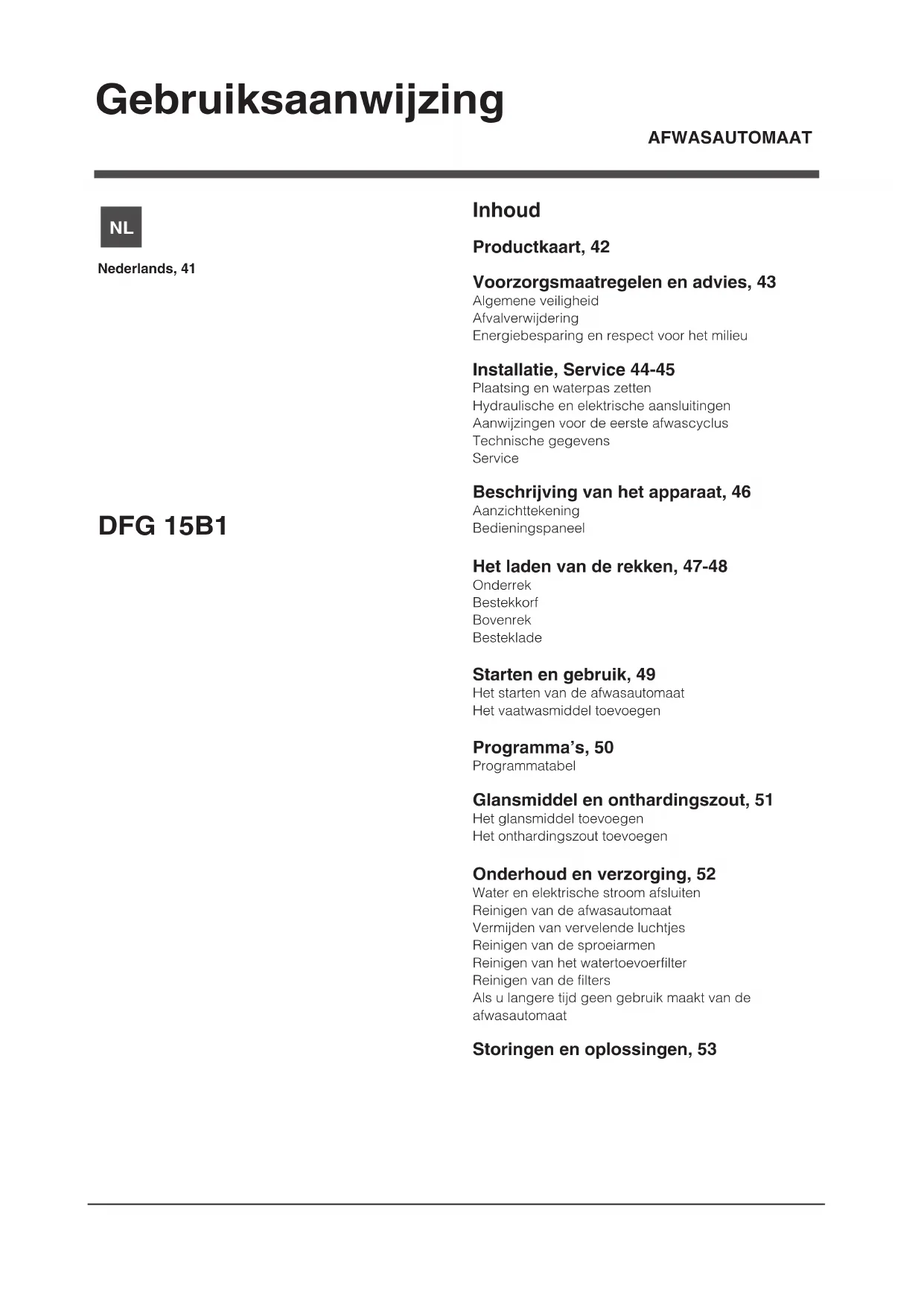 Vind de handleiding van het apparaat gratis DFG 15B1 A EU INDESIT in PDF-formaat.