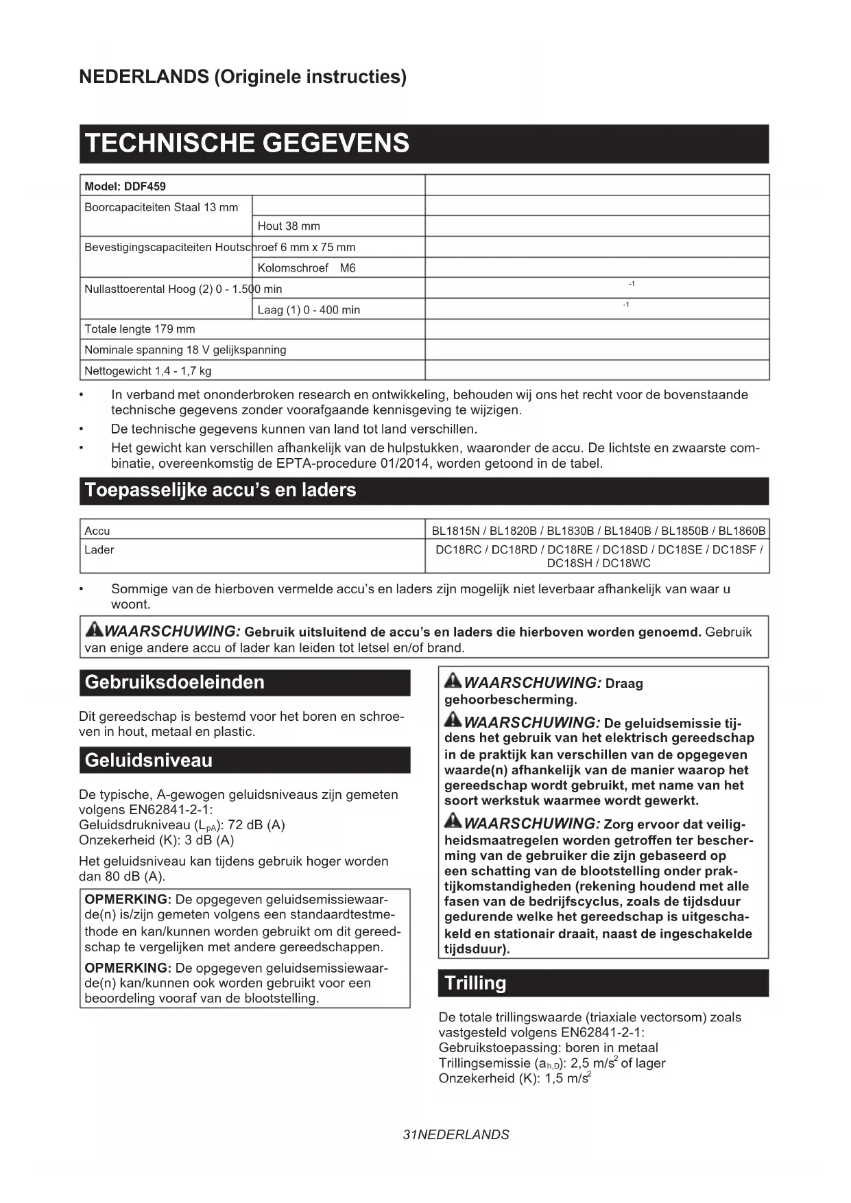 GEBRUIKSAANWIJZING DDF459 MAKITA