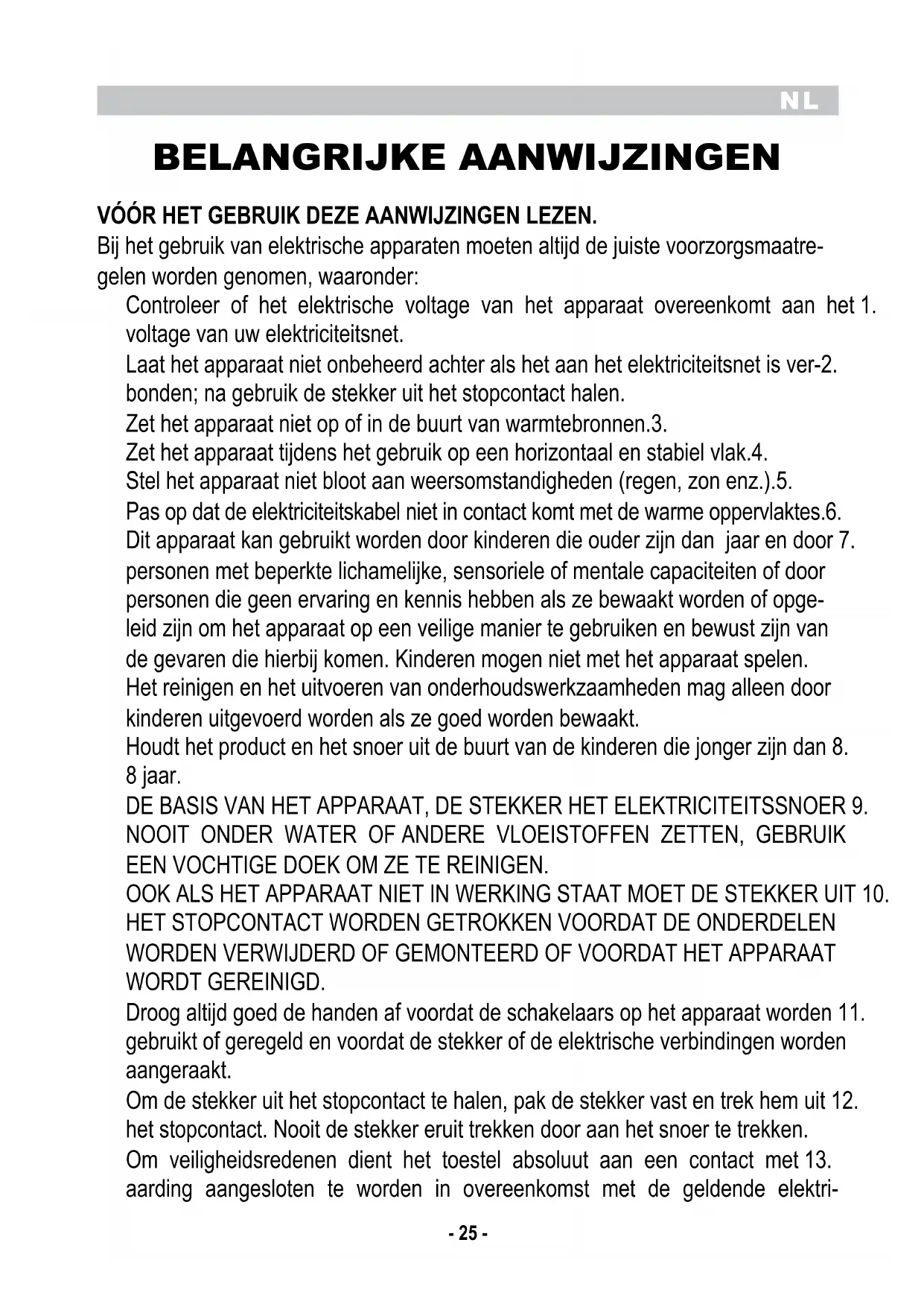 BELANGRIJKE AANWIJZINGEN VÓÓR HET GEBRUIK DEZE AANWIJZINGEN LEZEN.