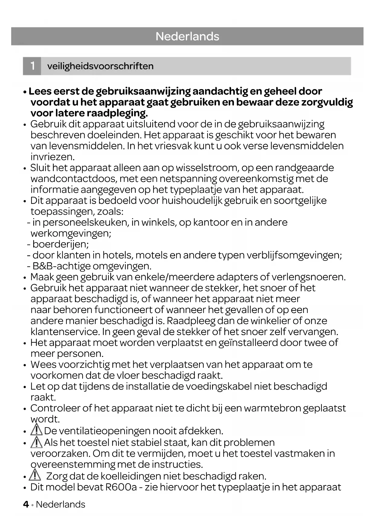 • Dit model bevat R600a - zie hiervoor het typeplaatje in het apparaat