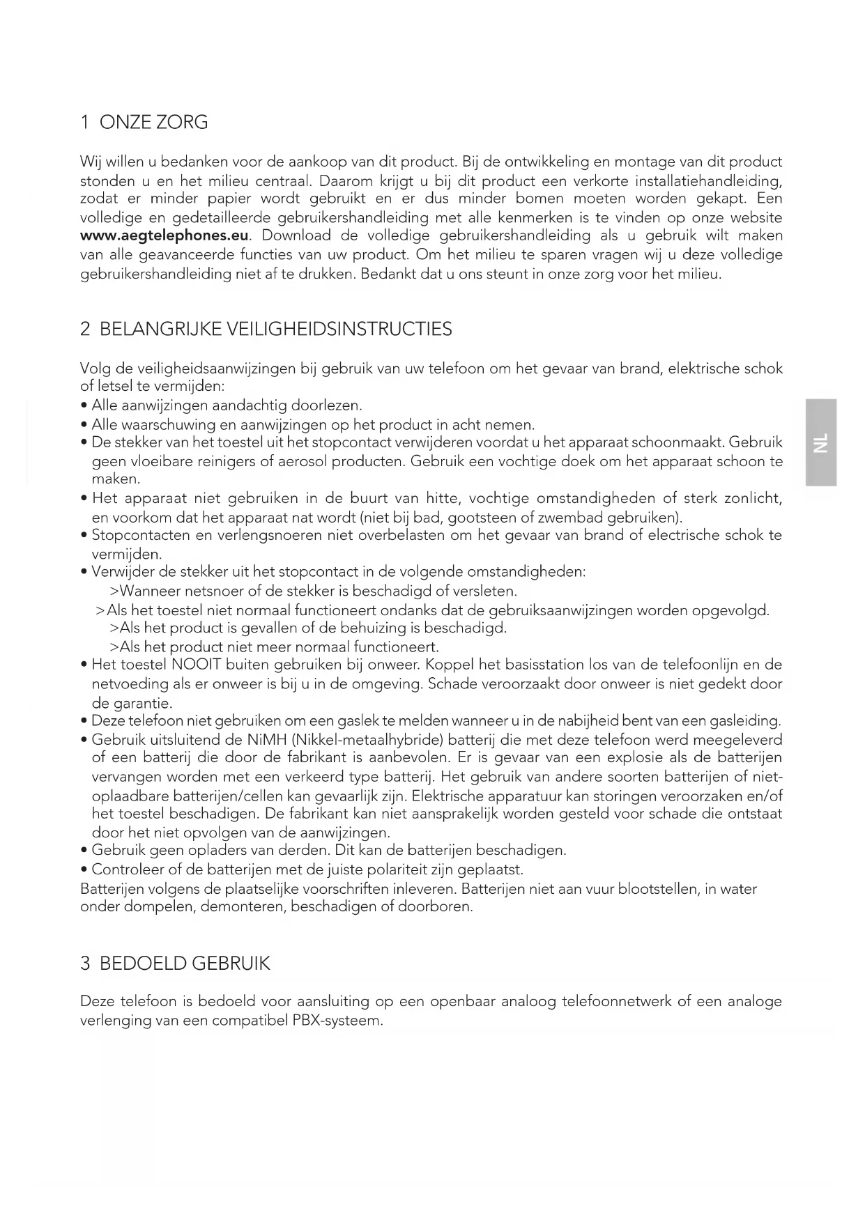 3 BEDOELD GEBRUIK Deze telefoon is bedoeld voor aansluiting op een openbaar analoog telefoonnetwerk of een analoge