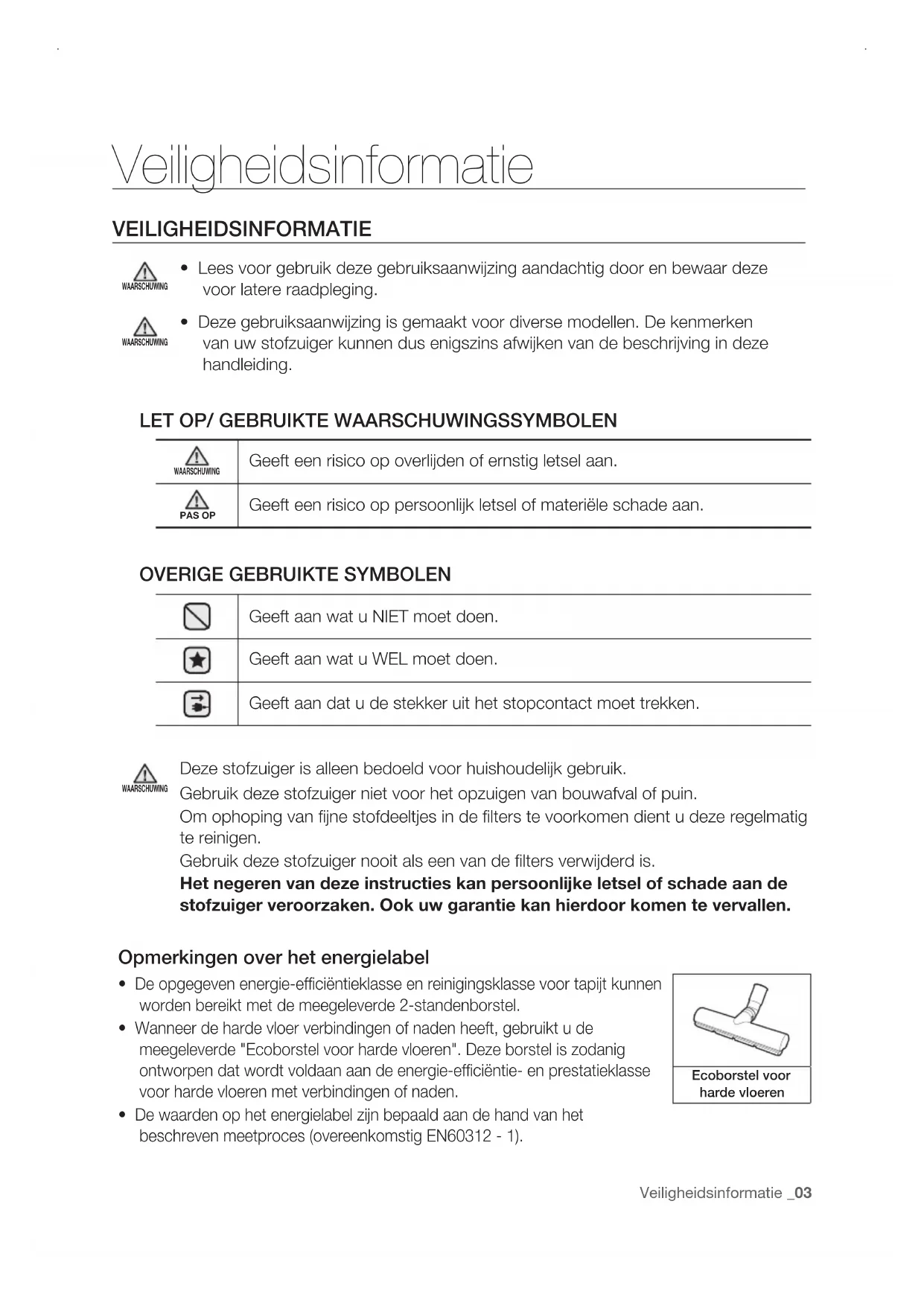 beschreven meetproces (overeenkomstig EN60312 - 1). Ecoborstel voor harde vloeren DJ68-00710G-03.indb 3 2014. 8. 28. �� 6:0704_ Veiligheidsinformatie