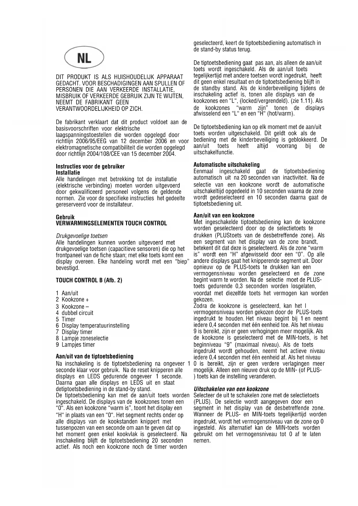 VERWARMINGSELEMENTEN TOUCH CONTROL Drukgevoelige toetsen