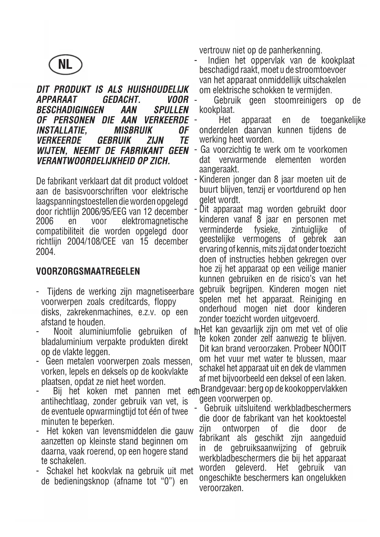 - en aan pannen met vlakke en dikke bodem.