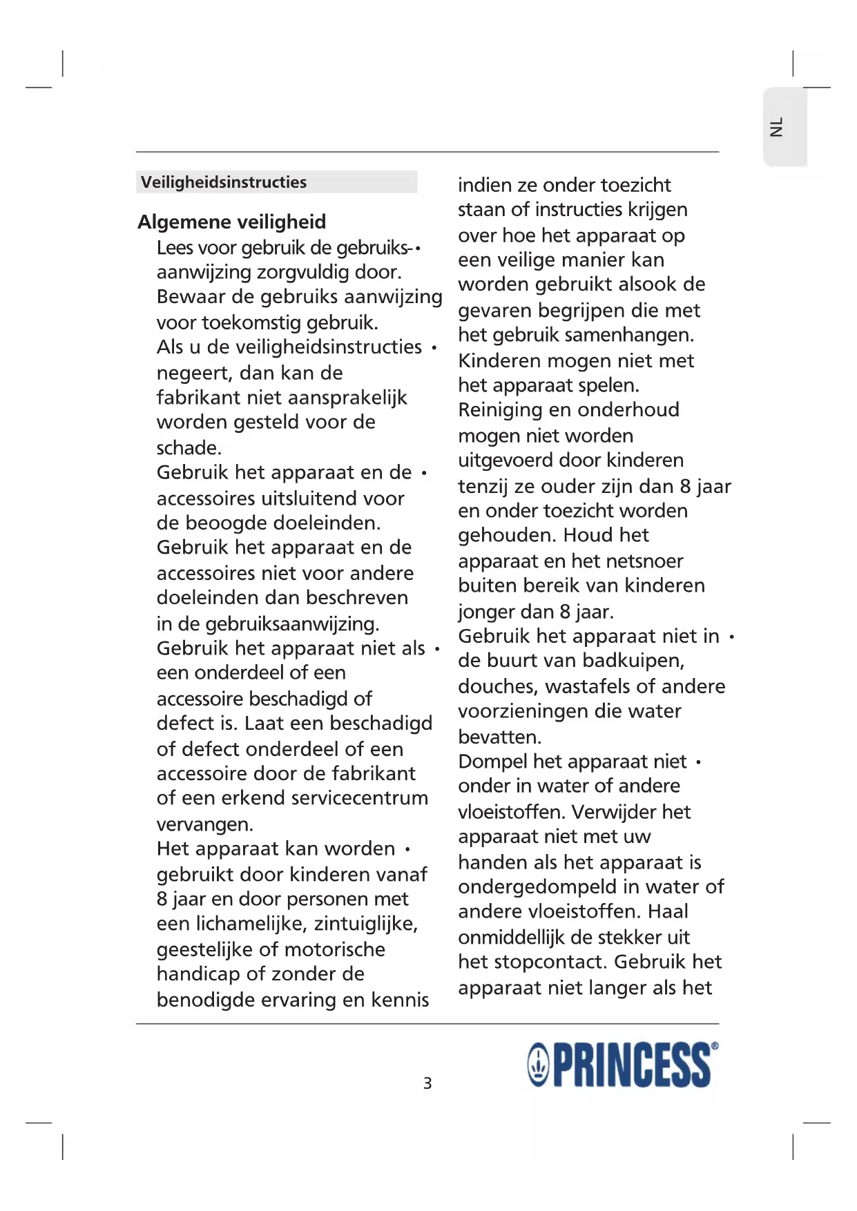 GEBRUIKSAANWIJZING 212040 PRINCESS