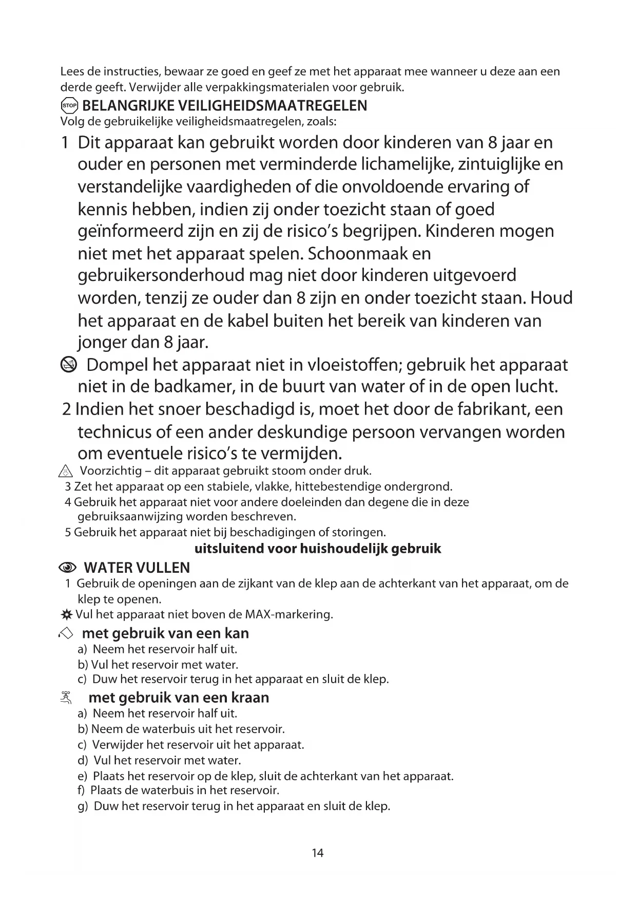 o Voorzichtig – dit apparaat gebruikt stoom onder druk.