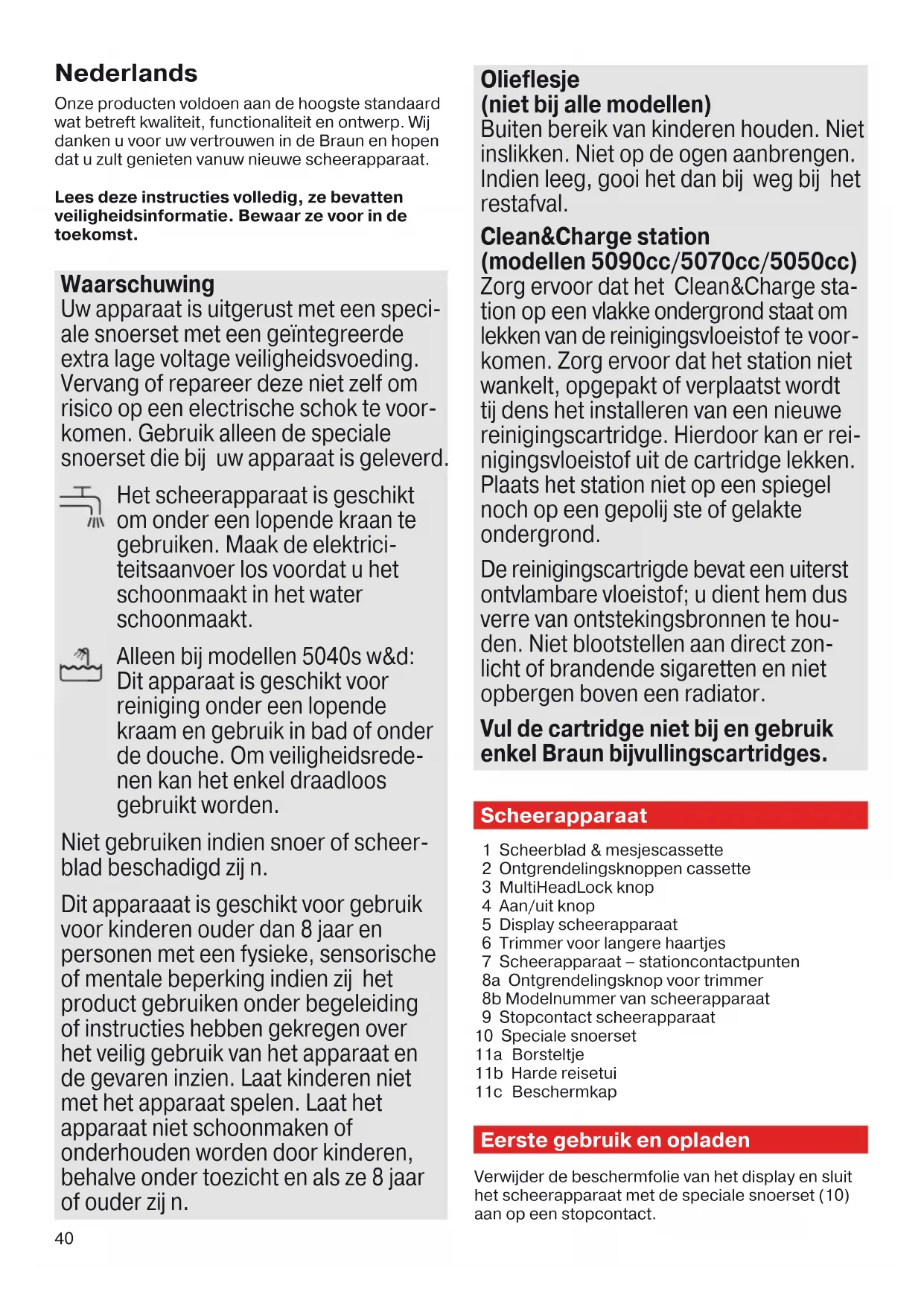 Download de handleiding voor uw Scheermes in PDF-formaat gratis! Vind uw handleiding Series 55070cc - BRAUN en neem uw elektronisch apparaat weer in handen. Op deze pagina staan alle documenten die nodig zijn voor het gebruik van uw apparaat. Series 55070cc van het merk BRAUN.