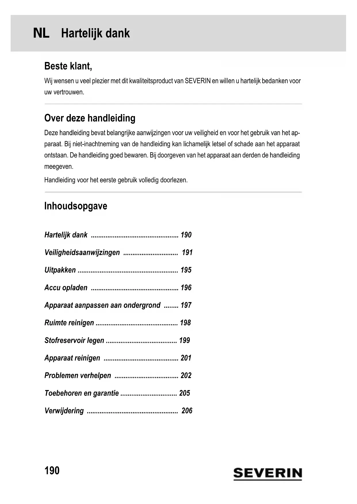 Wij wensen u veel plezier met dit kwaliteitsproduct van SEVERIN en willen u hartelijk bedanken voor