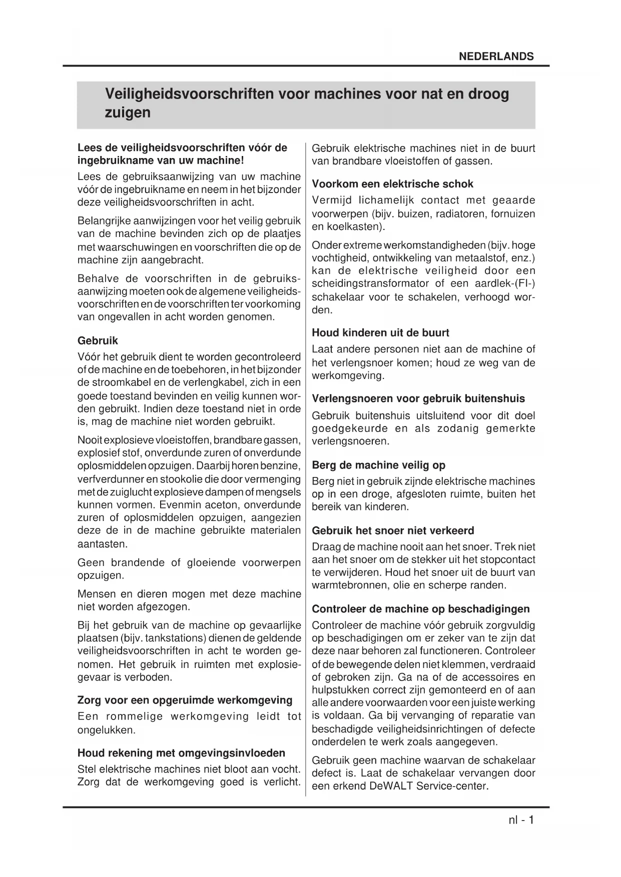 NEDERLANDS Veiligheidsvoorschriften voor machines voor nat en droog