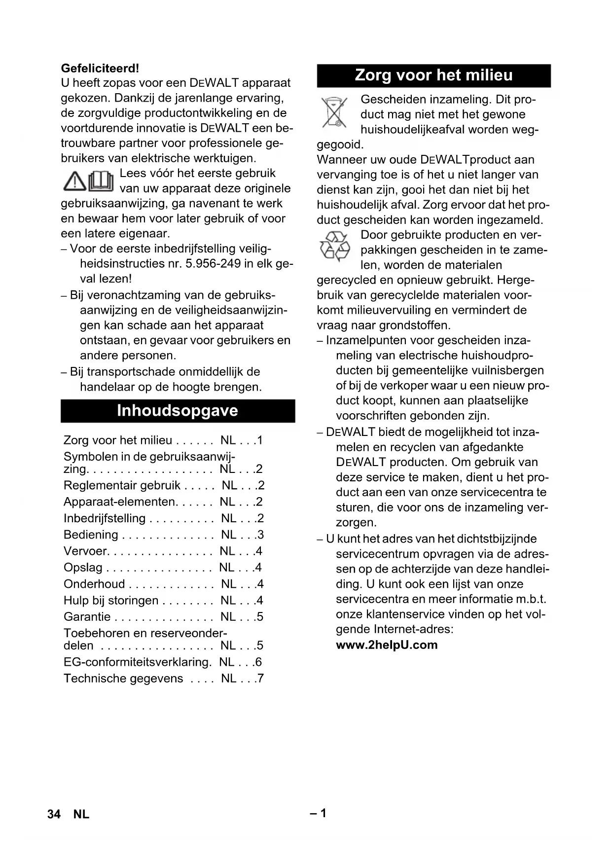 Zorg voor het milieu . . . . . . NL . . .1