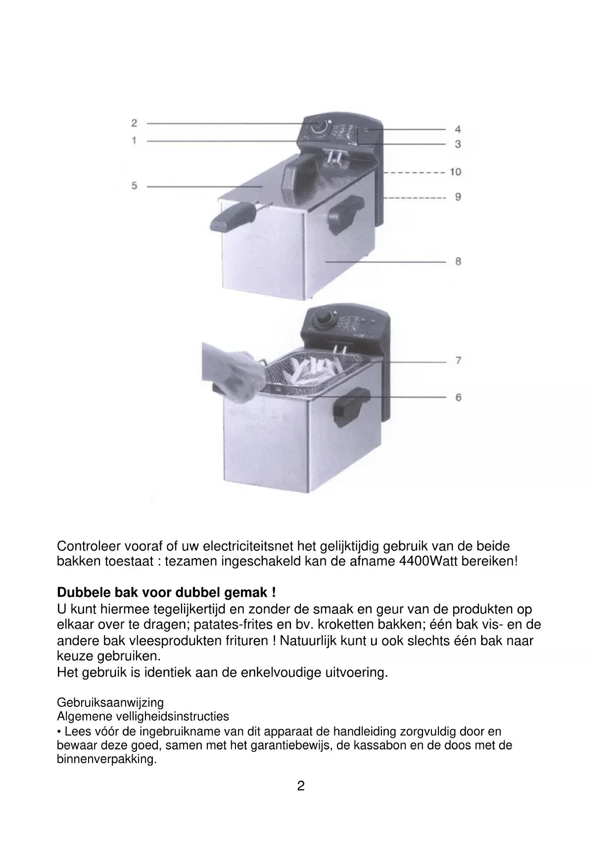 2. Gebruik voor het frituren kwalitatief goede frituurolie. NOOIT vast vet gebruiken.