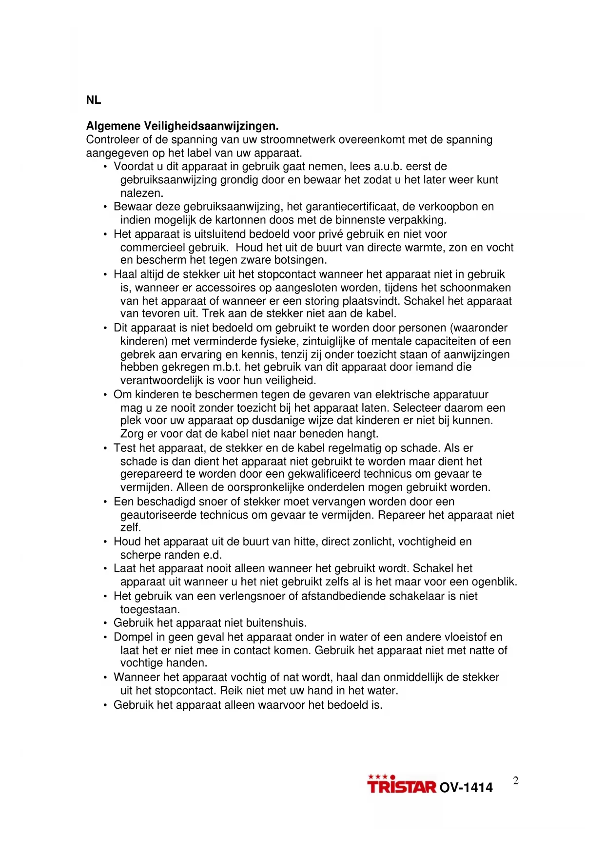 GEBRUIKSAANWIJZING OV1414 TRISTAR