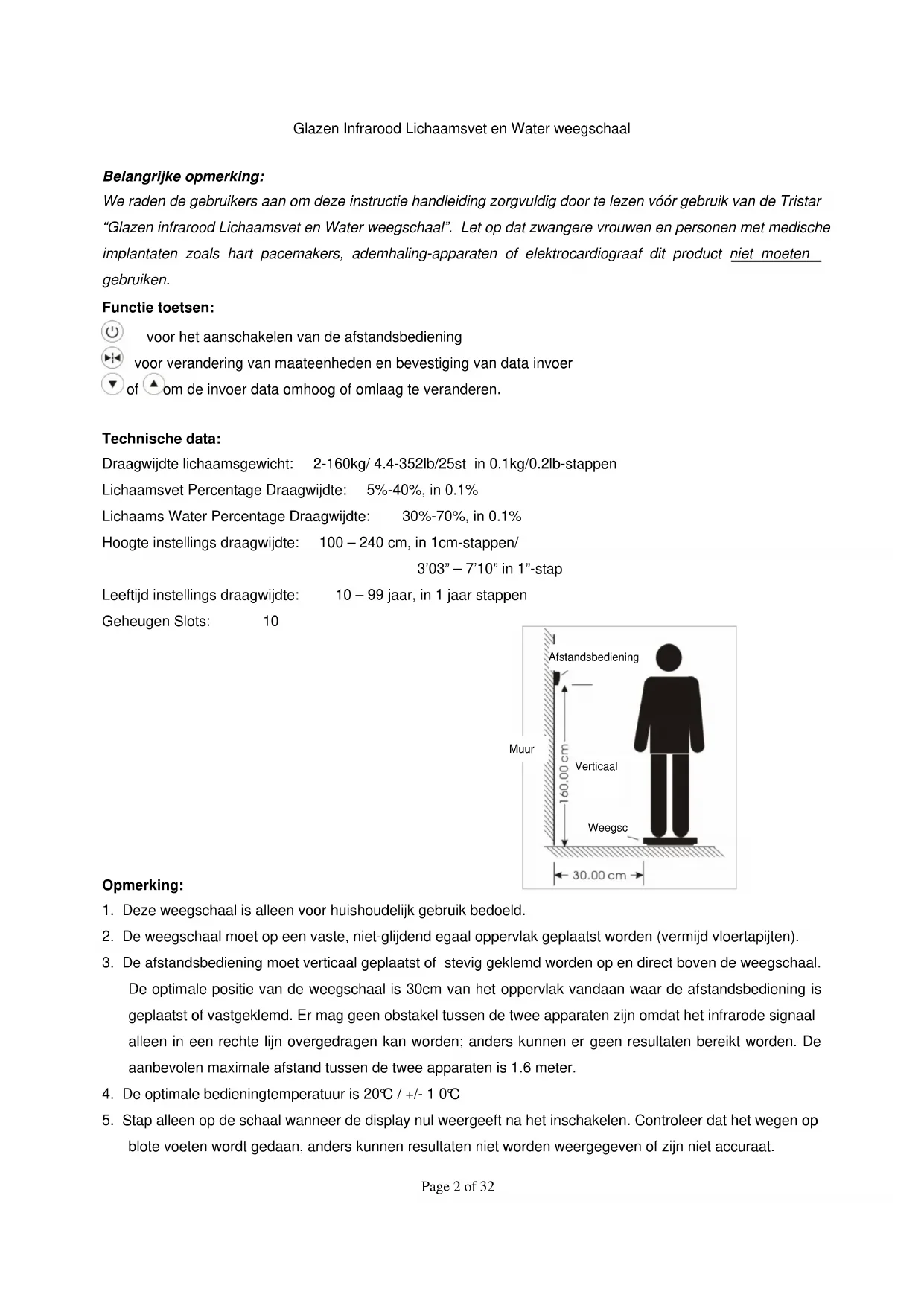 (1)De weegschaal mag nooit nat worden.Page 5 of 32