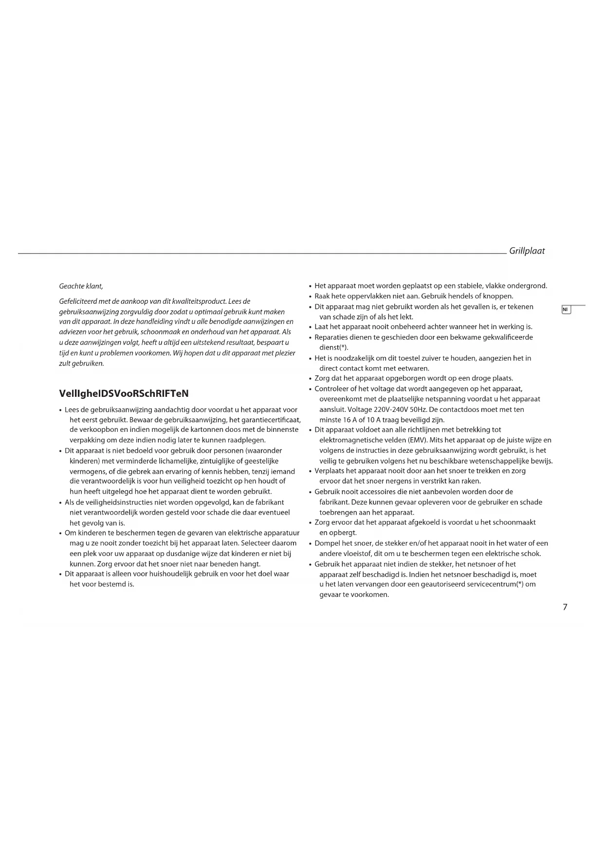 • Smeer voor het gebruik de grilplaat in met een beetje olie.