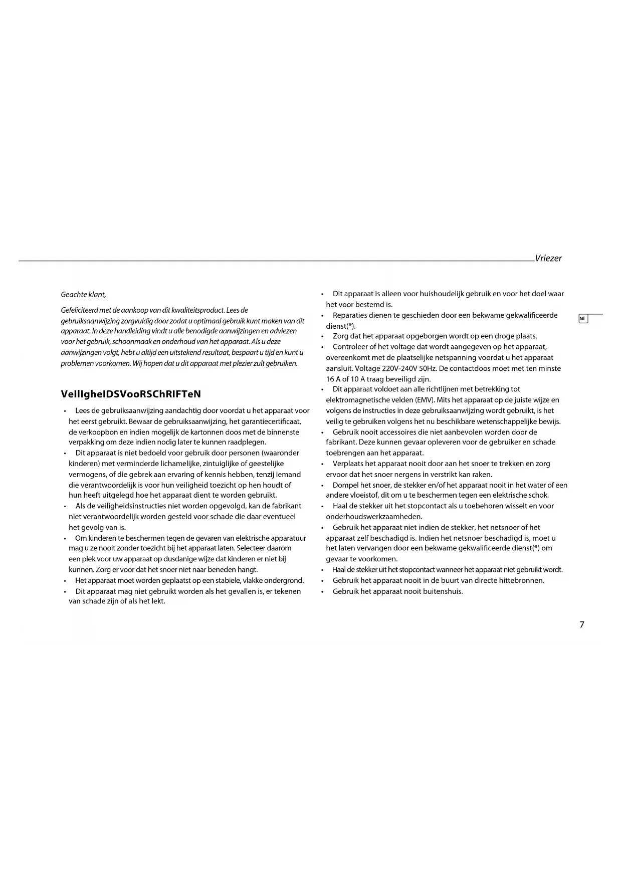 voor het gebruik, schoonmaak en onderhoud van het apparaat. Als u deze
