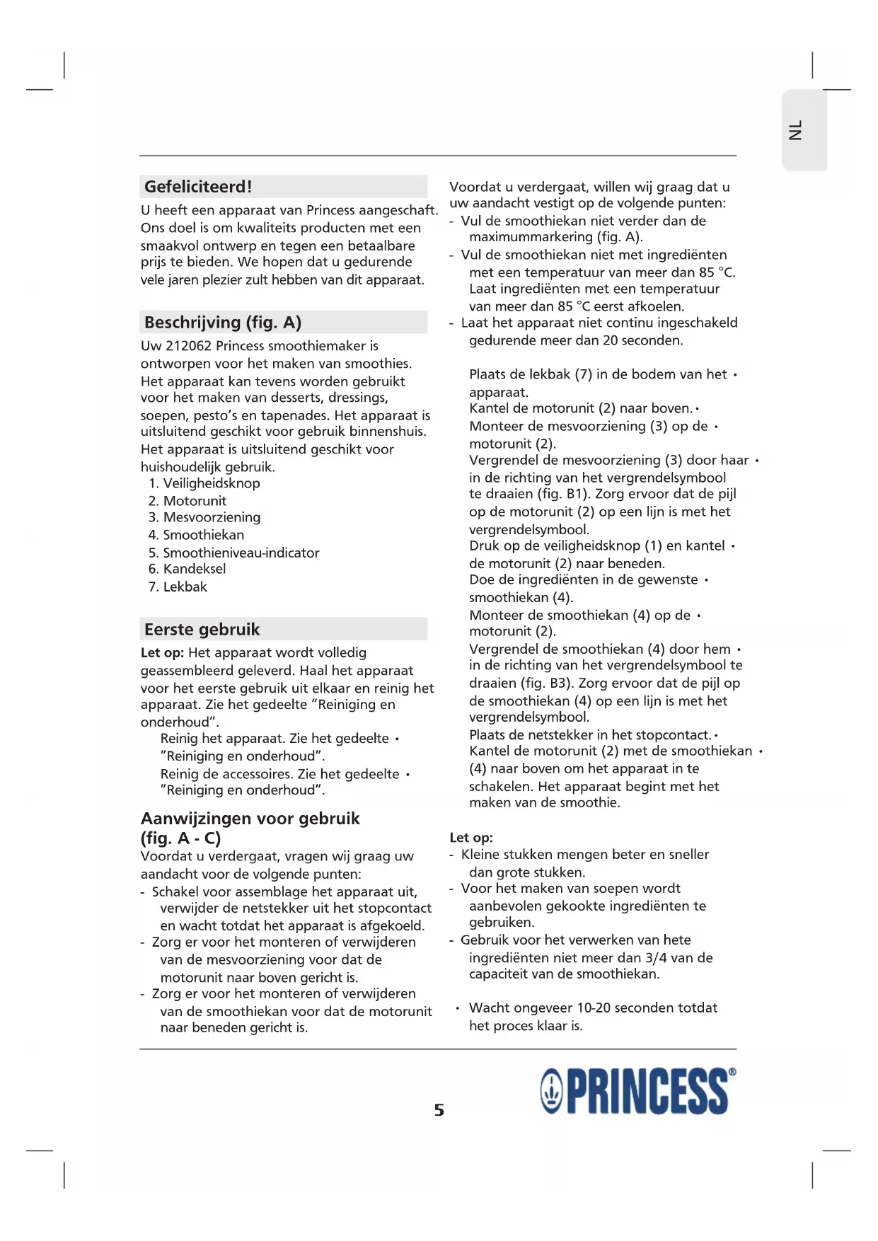 GEBRUIKSAANWIJZING Smoothie Maker 212062 PRINCESS
