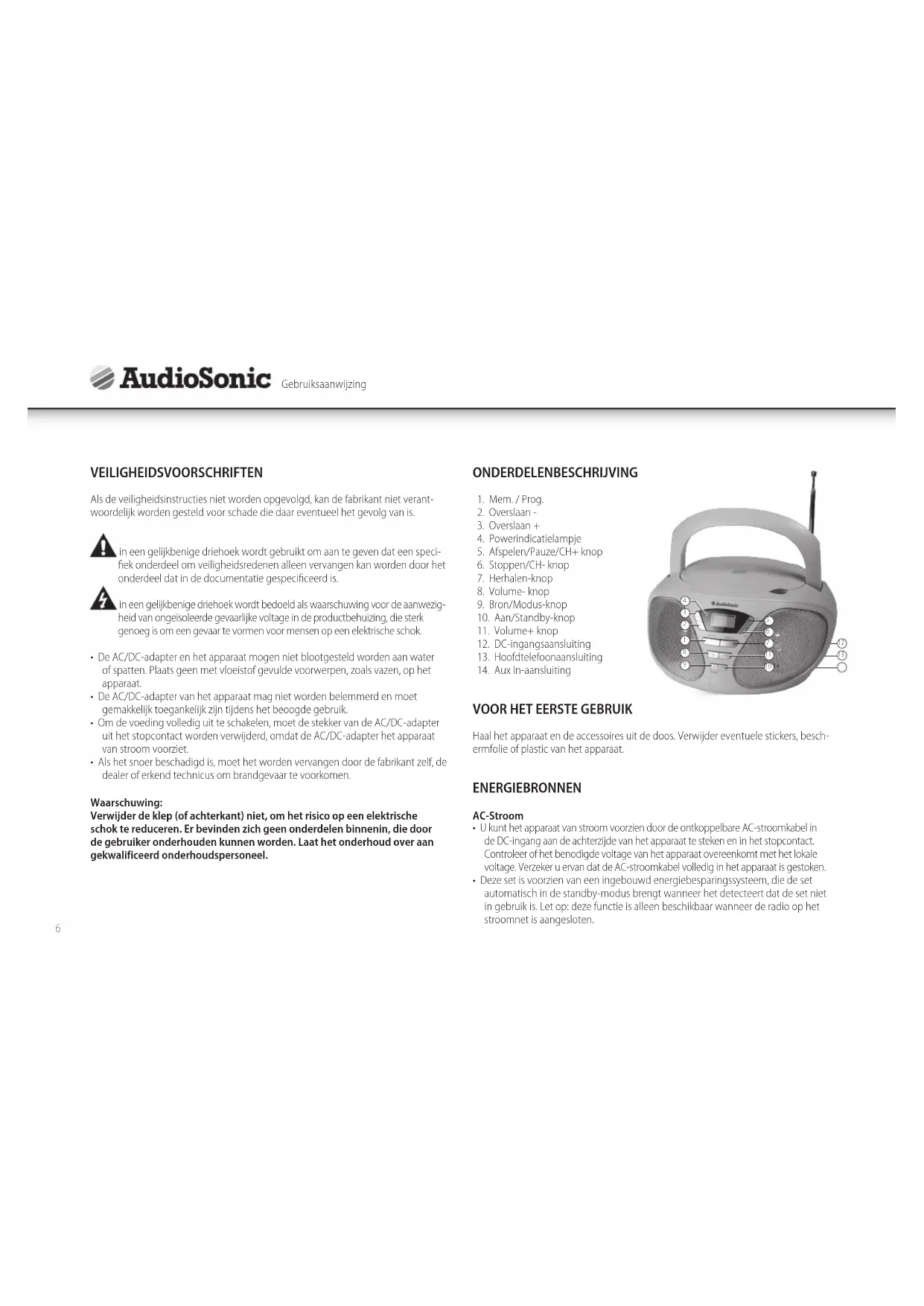 GEBRUIKSAANWIJZING CD1567 AudioSonic