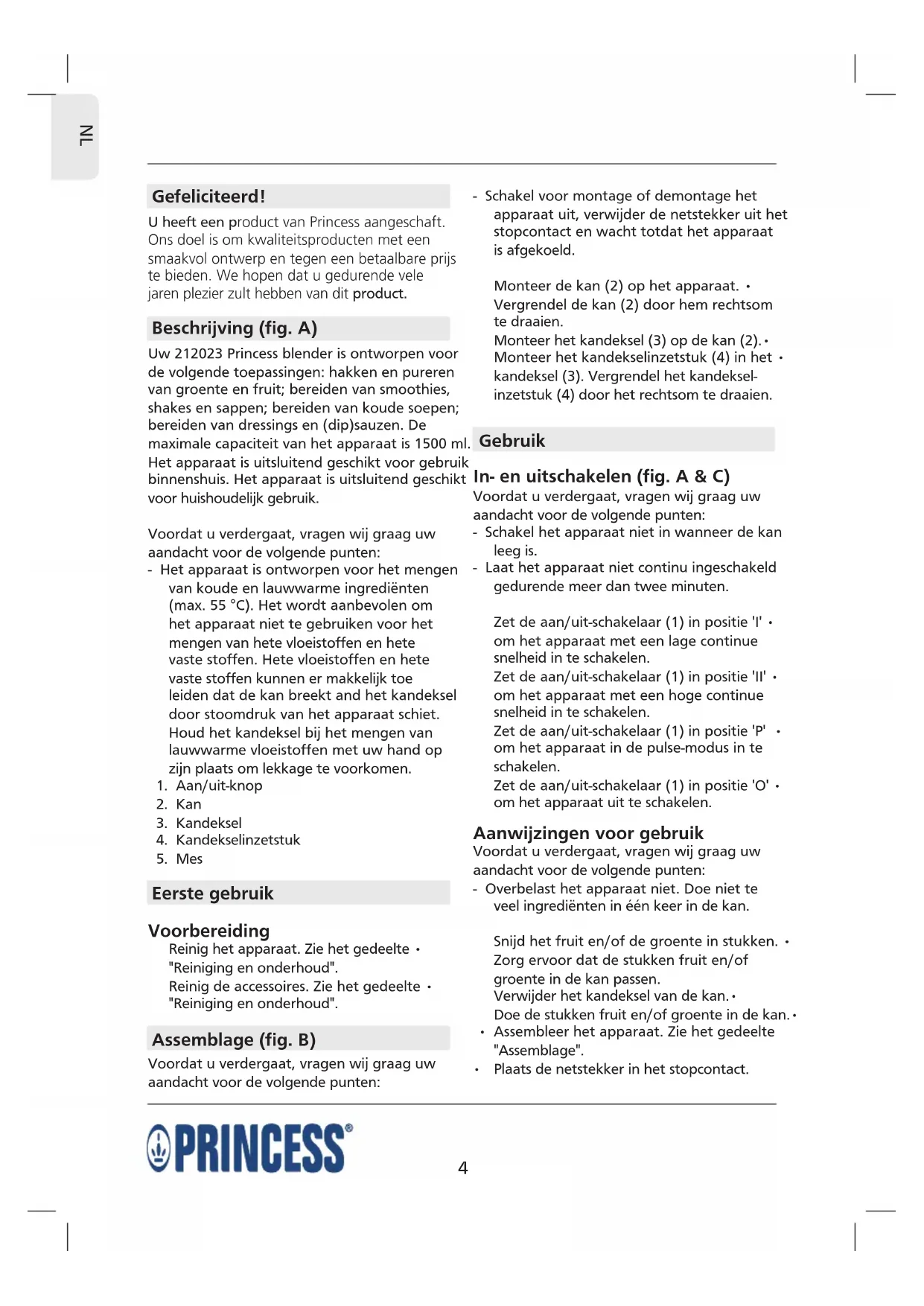 GEBRUIKSAANWIJZING Power Blender PRINCESS