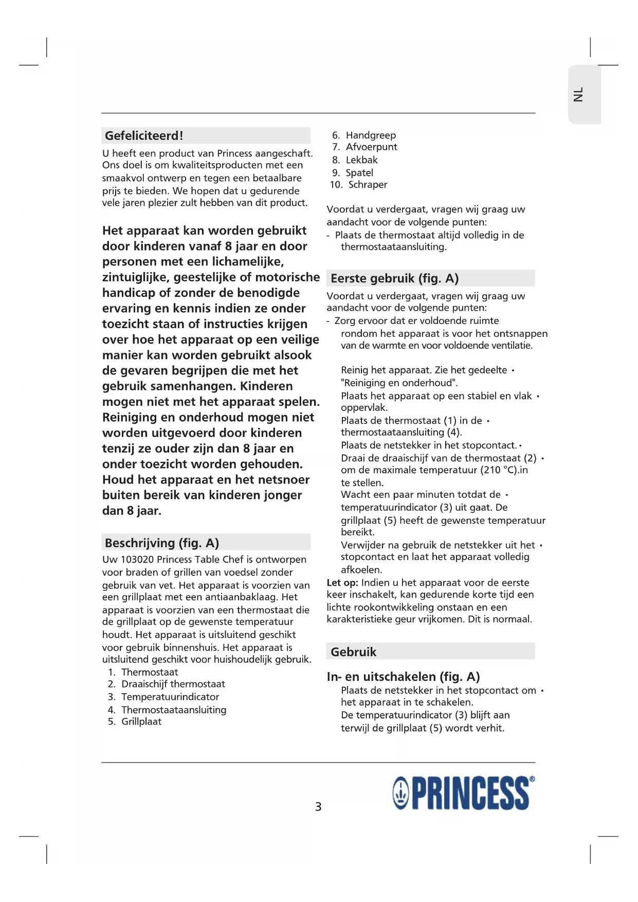 GEBRUIKSAANWIJZING Table Grill Fiësta 103020 PRINCESS