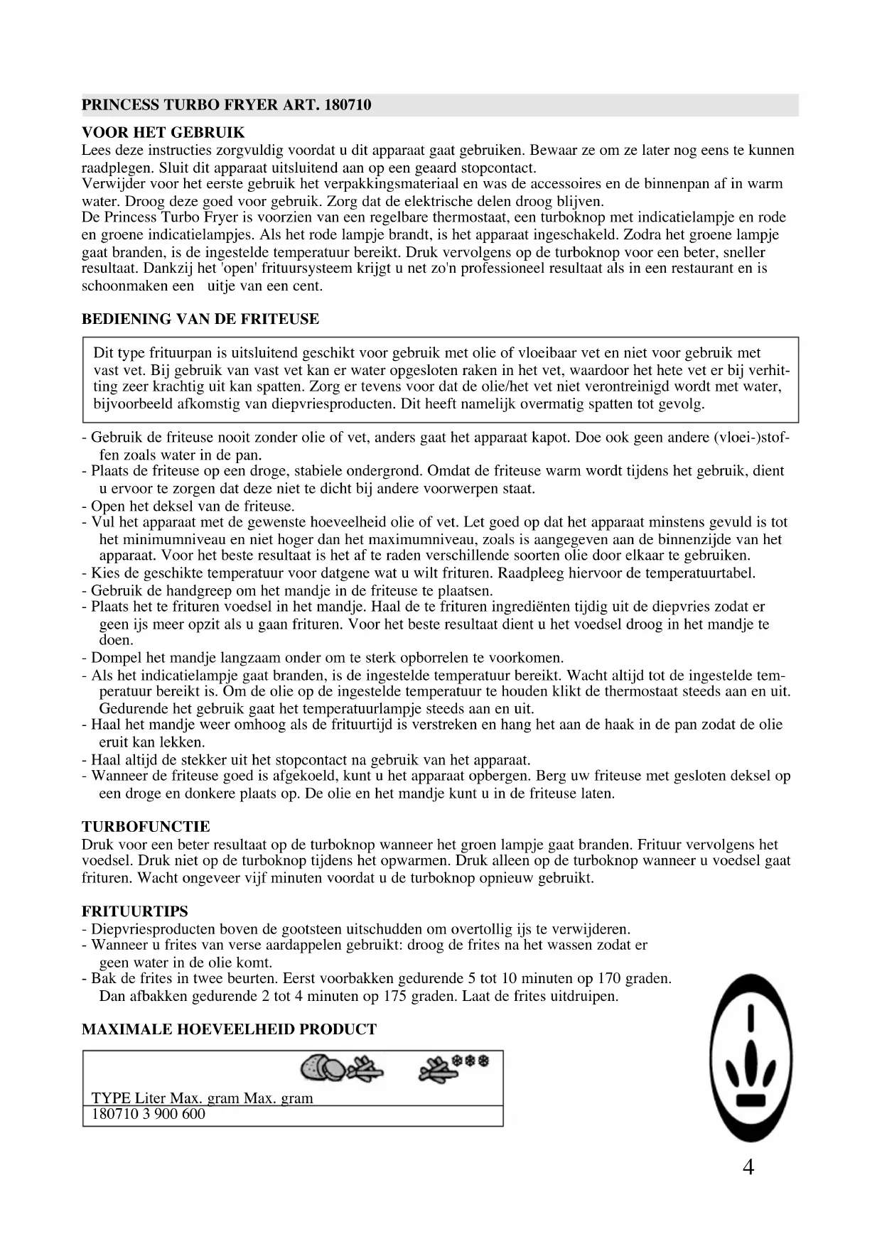 TURBO FRYER Gebruiksaanwijzing