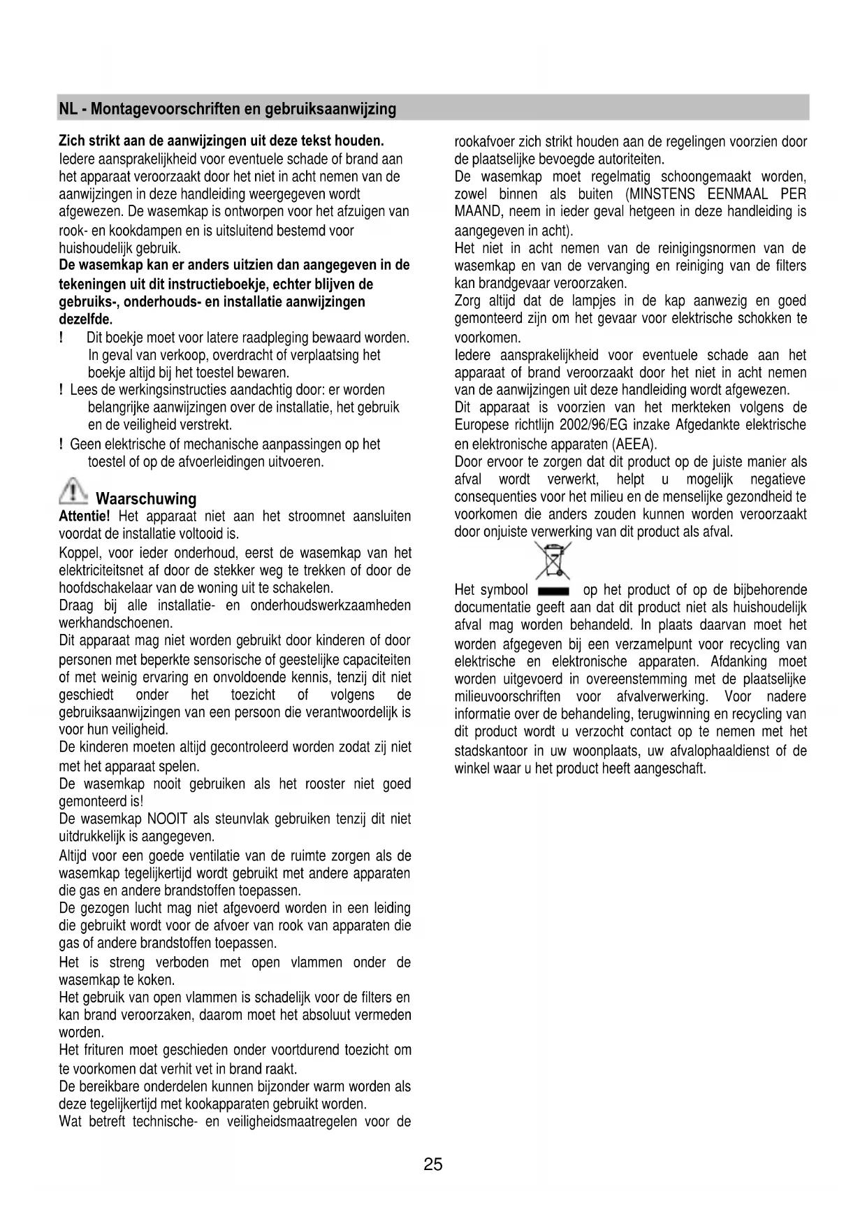 afgewezen. De wasemkap is ontworpen voor het afzuigen van