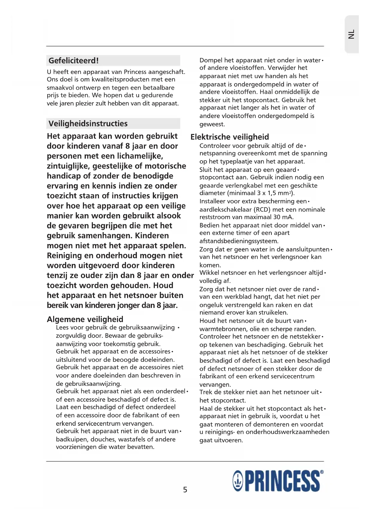 U heeft een apparaat van Princess aangeschaft.