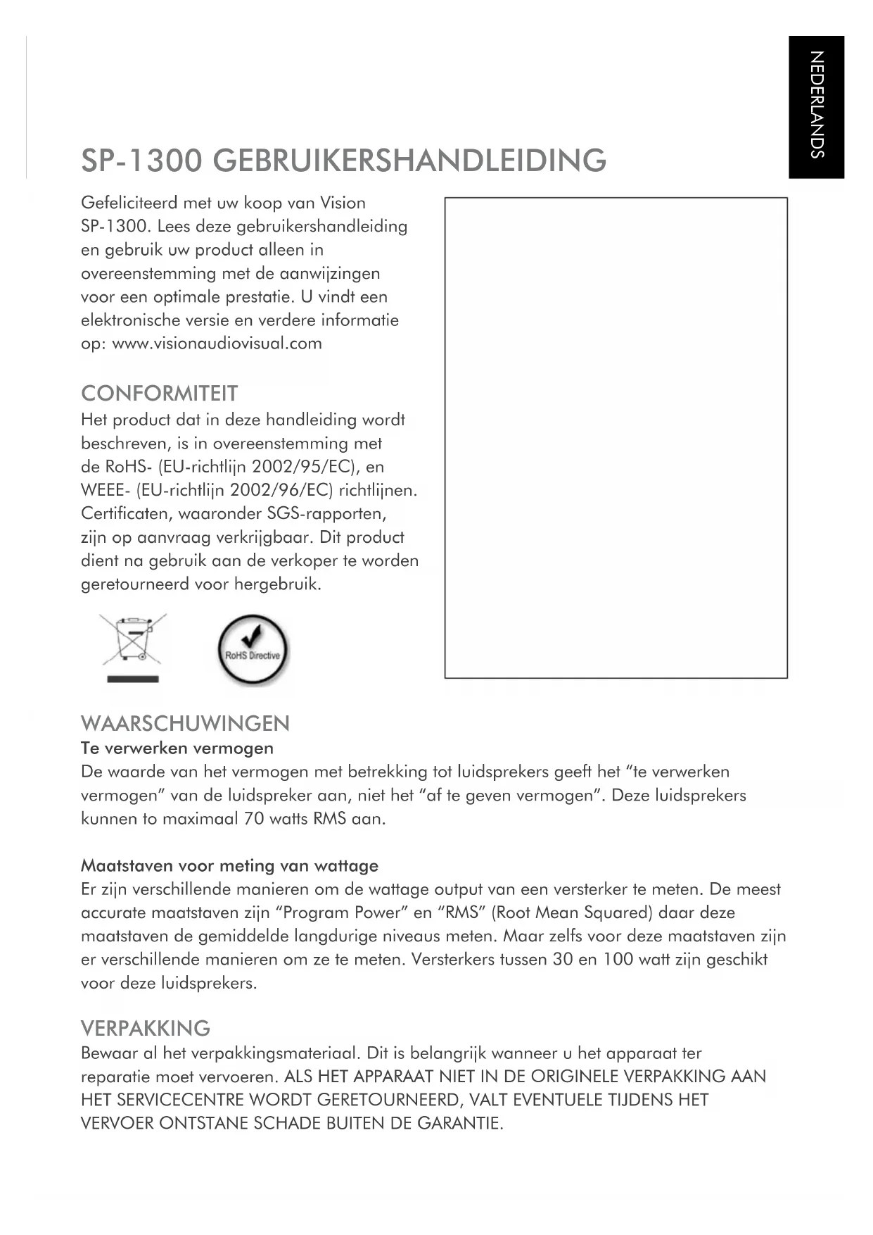SP1300W - Luidspreker VISION - Gratis gebruiksaanwijzing en handleiding