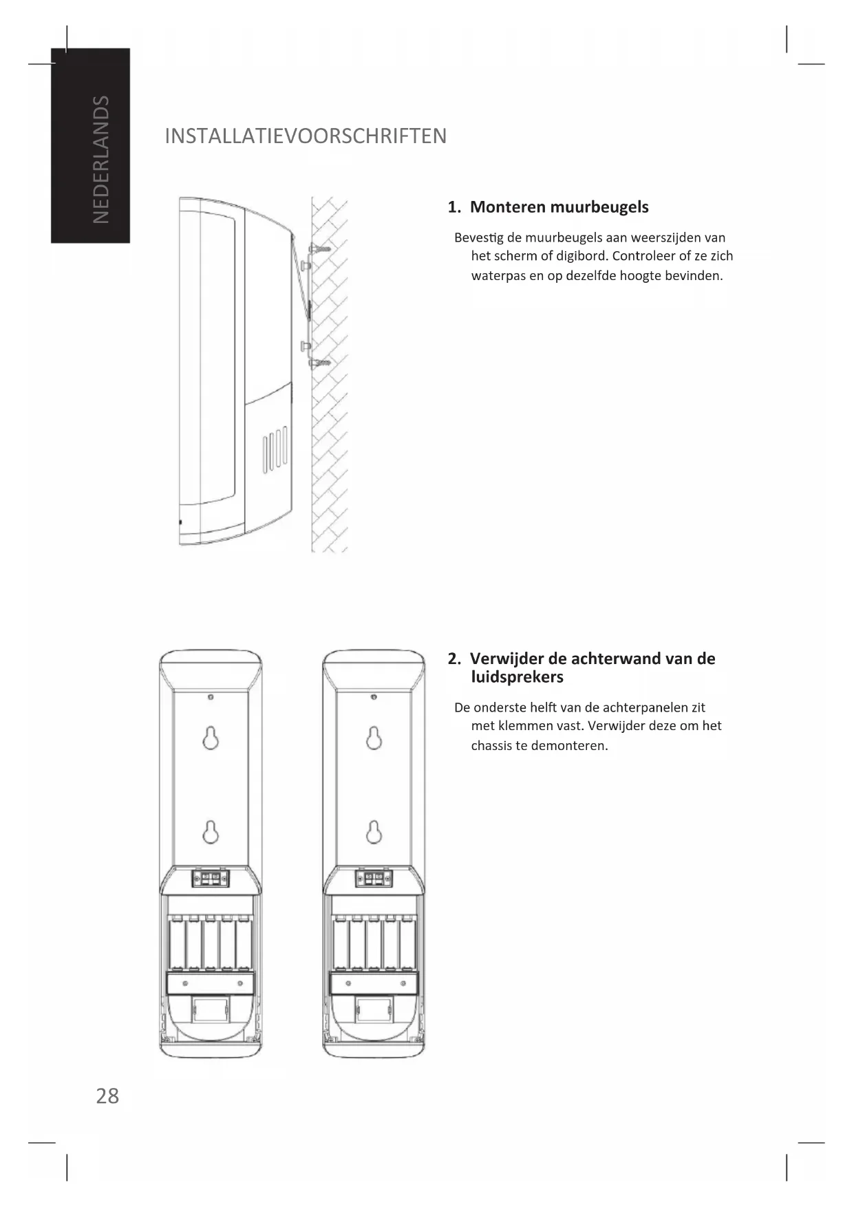 5. Plaats de achterwand terug door deze aan de muurbeugel te hangen.