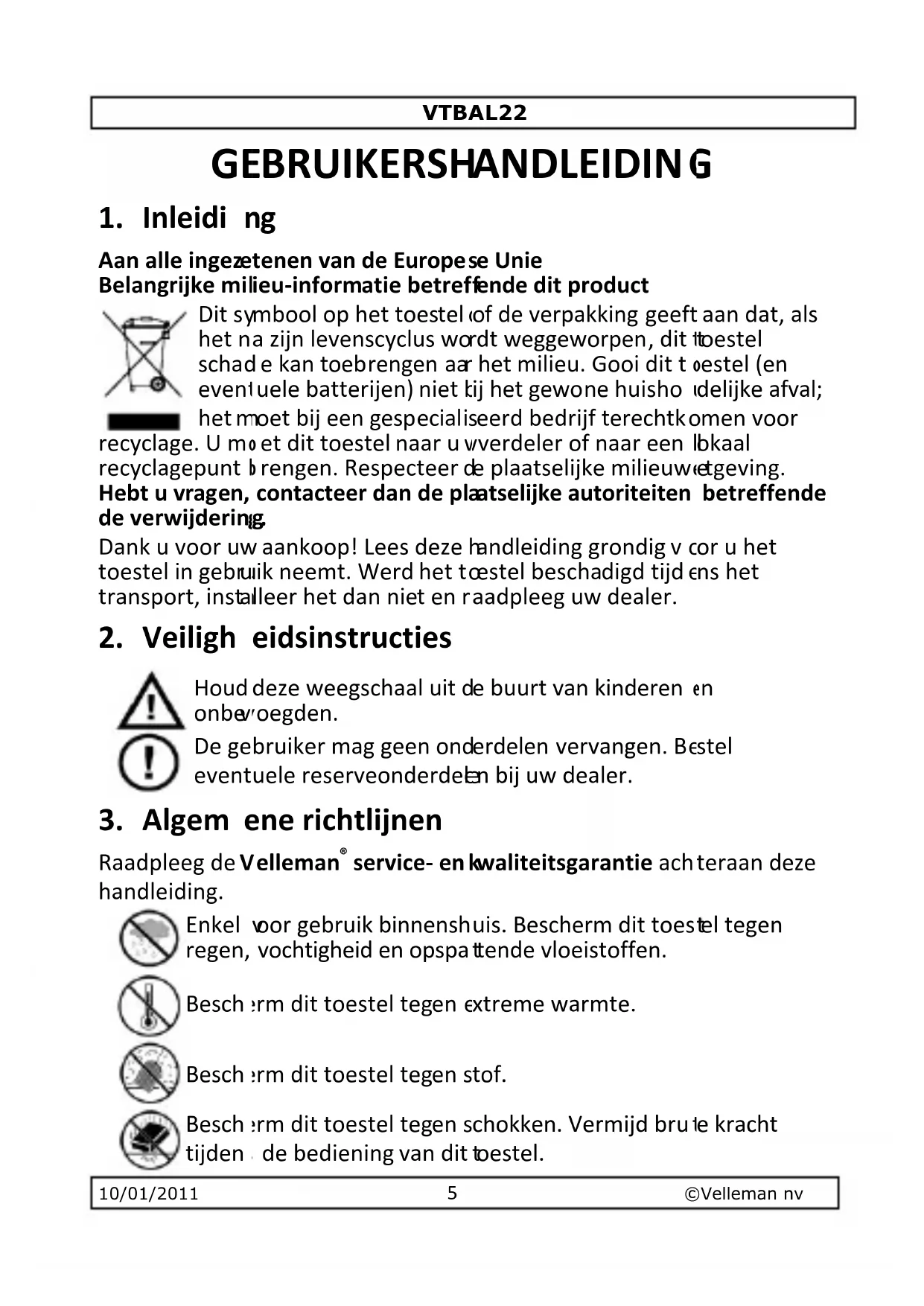 VTBAL22 - Weegschalen VELLEMAN - Gratis gebruiksaanwijzing en handleiding