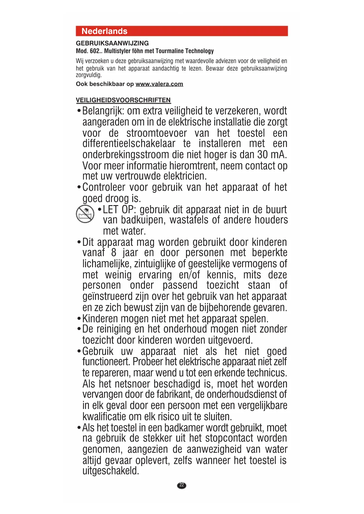 GEBRUIKSAANWIJZING Pro Style 400 Tourmaline 602.01B VALERA