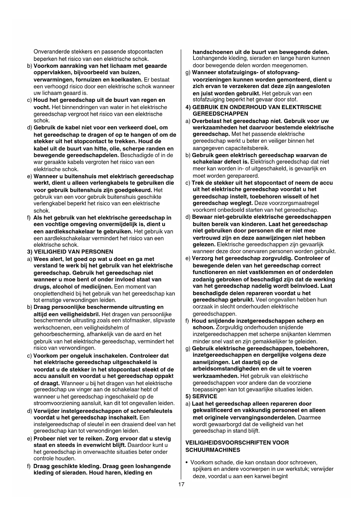 * NIET STANDAARD MEEGELEVERD VEILIGHEID ALGEMENE VEILIGHEIDSVOORSCHRIFTEN LET OP! Lees alle veiligheidswaarschuwingen en