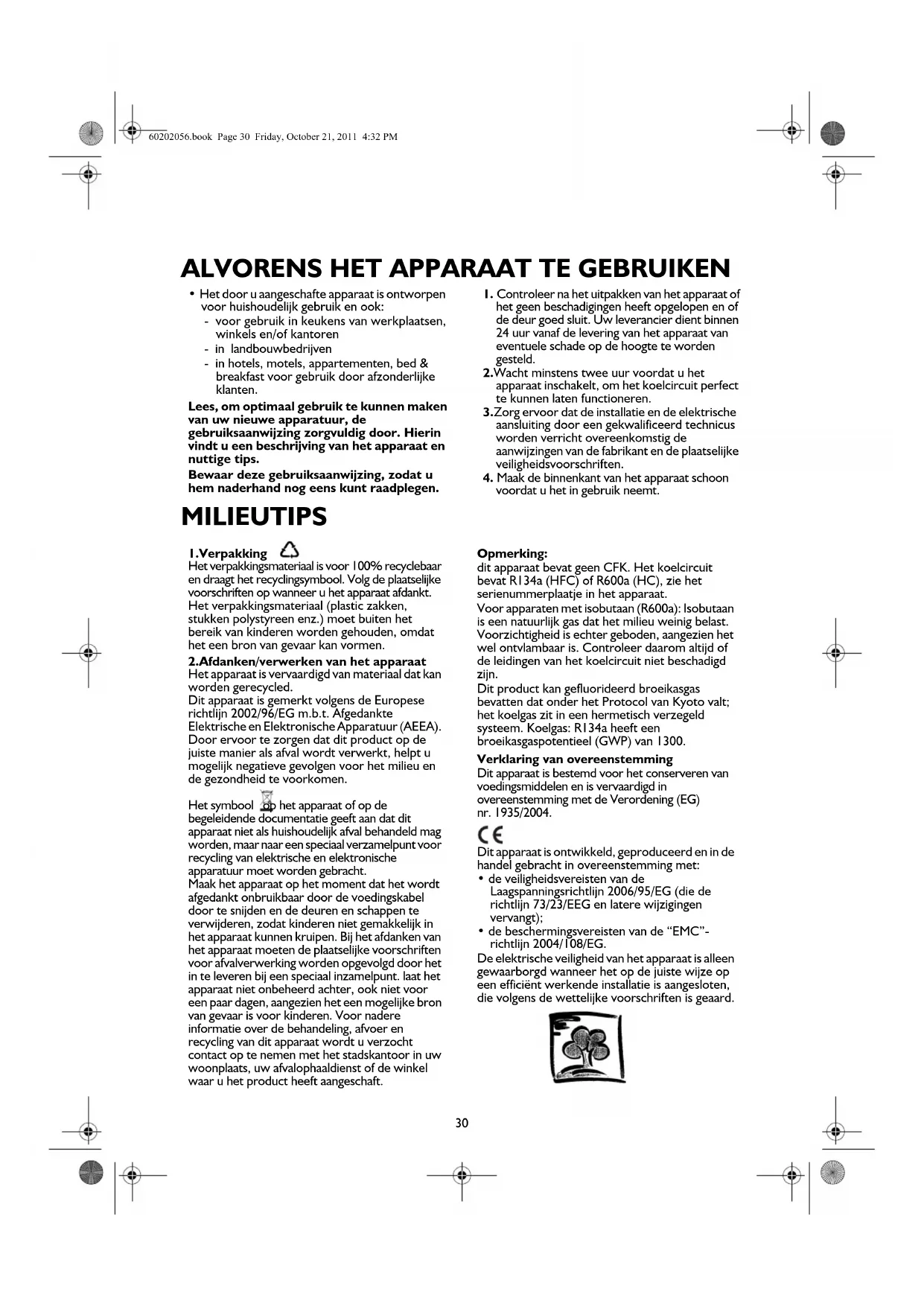 ALVORENS HET APPARAAT TE GEBRUIKEN MILIEUTIPS