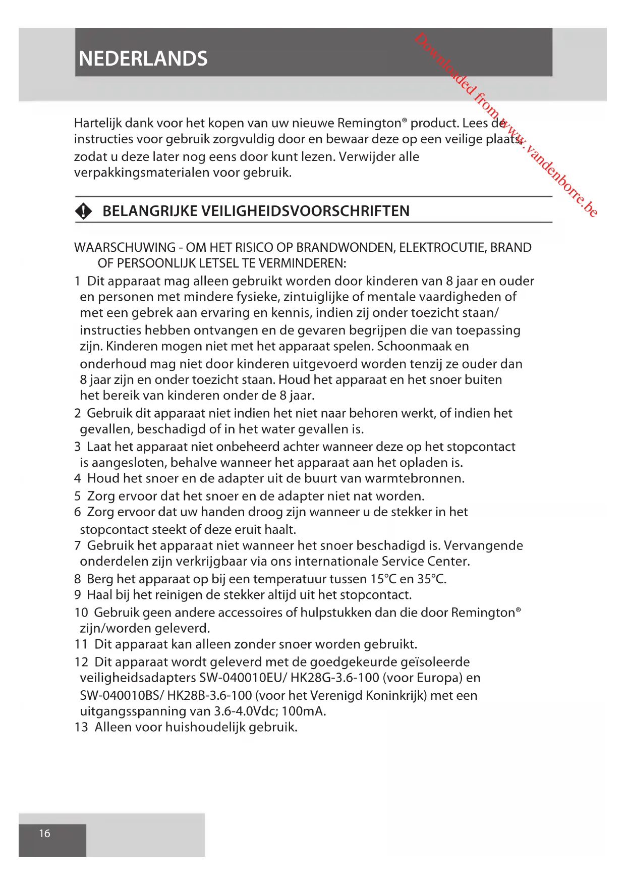 Hartelijk dank voor het kopen van uw nieuwe Remington® product. Lees de