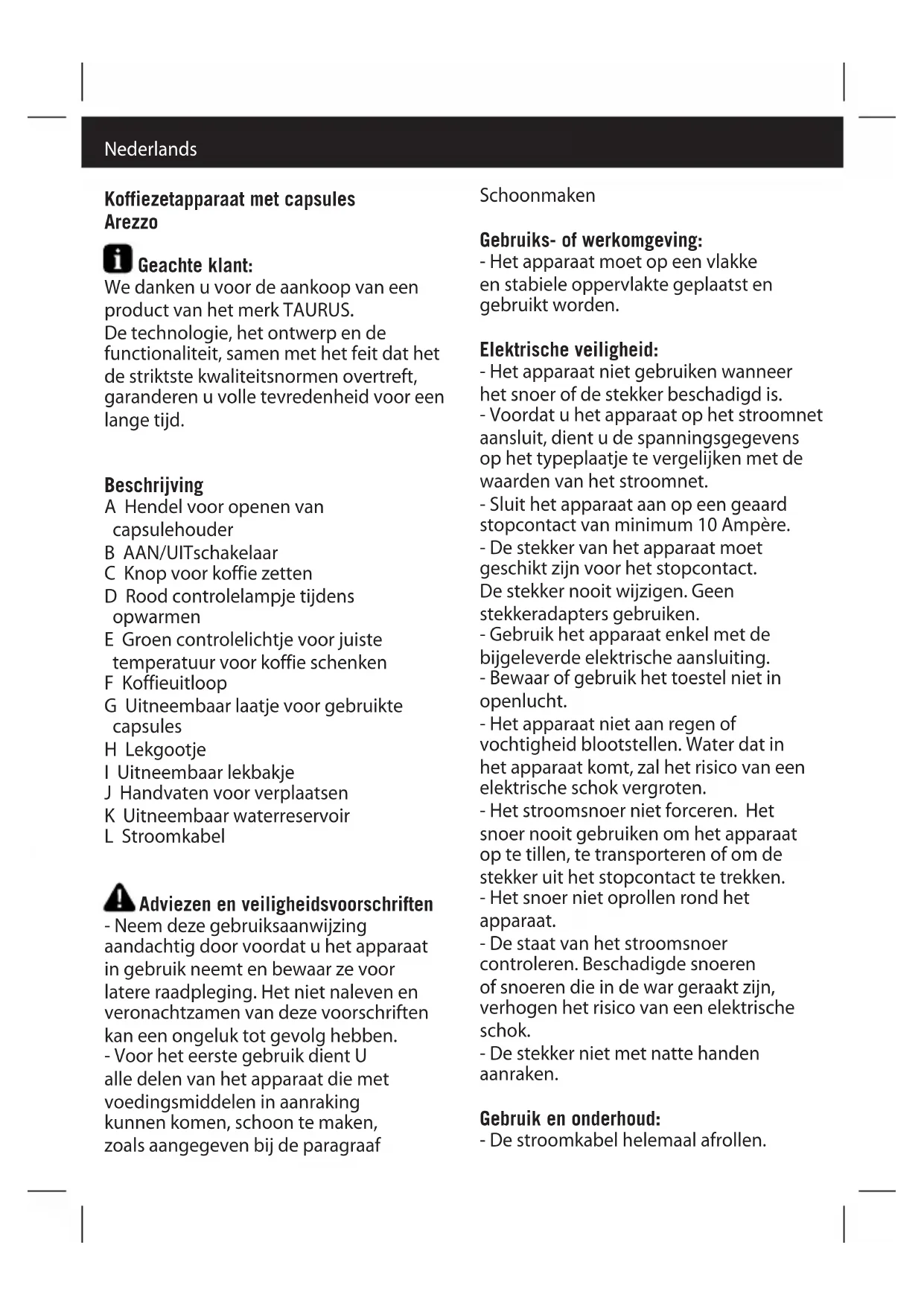 GEBRUIKSAANWIJZING Arezzo TAURUS