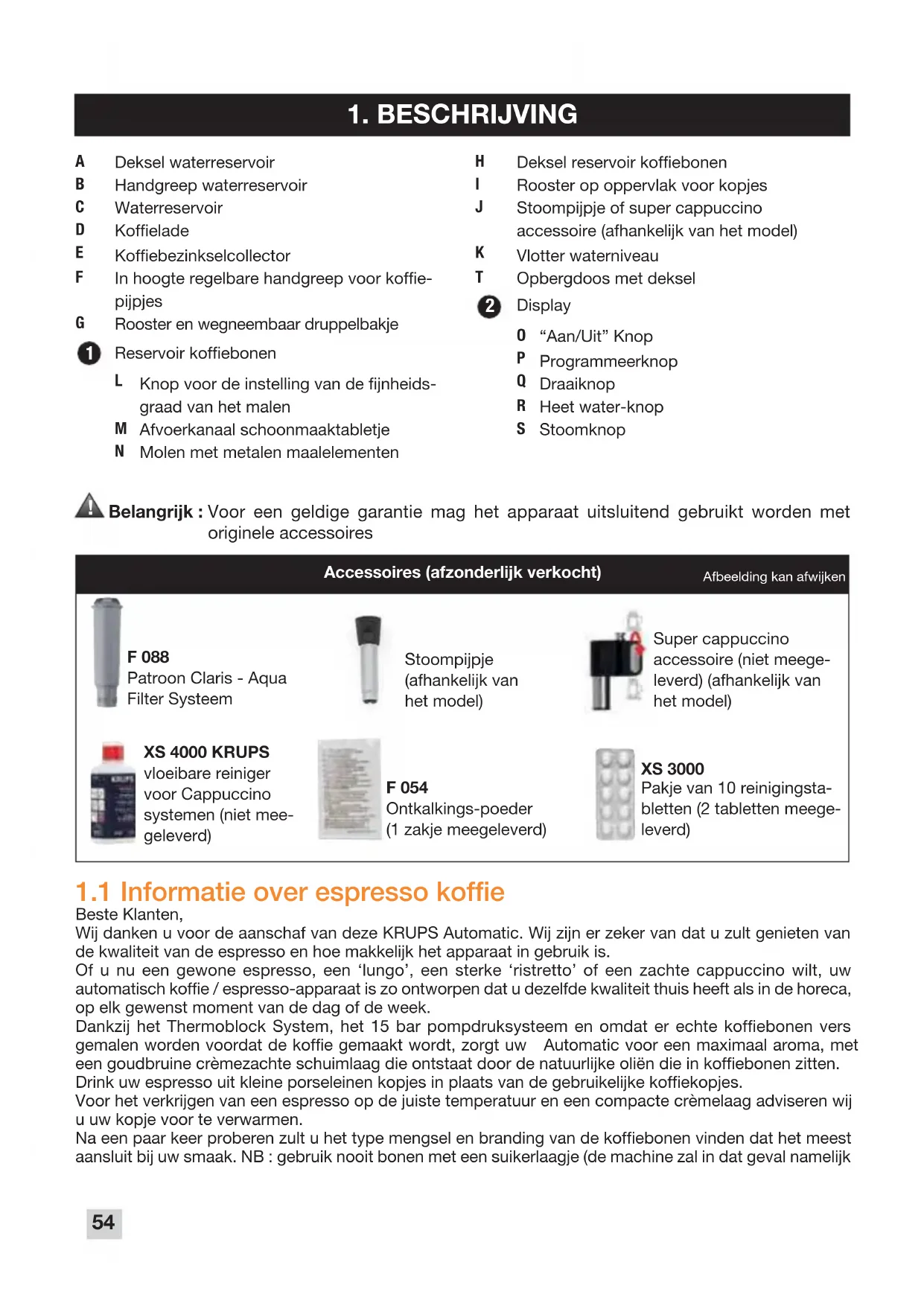INHOUDSOPGAVE NL KR_ESPRESSO_EA83_EO_EA83_NEW CHARTE 30/05/13 11:28 Page53Belangrijk : Voor een geldige garantie mag het apparaat uitsluitend gebruikt worden met
