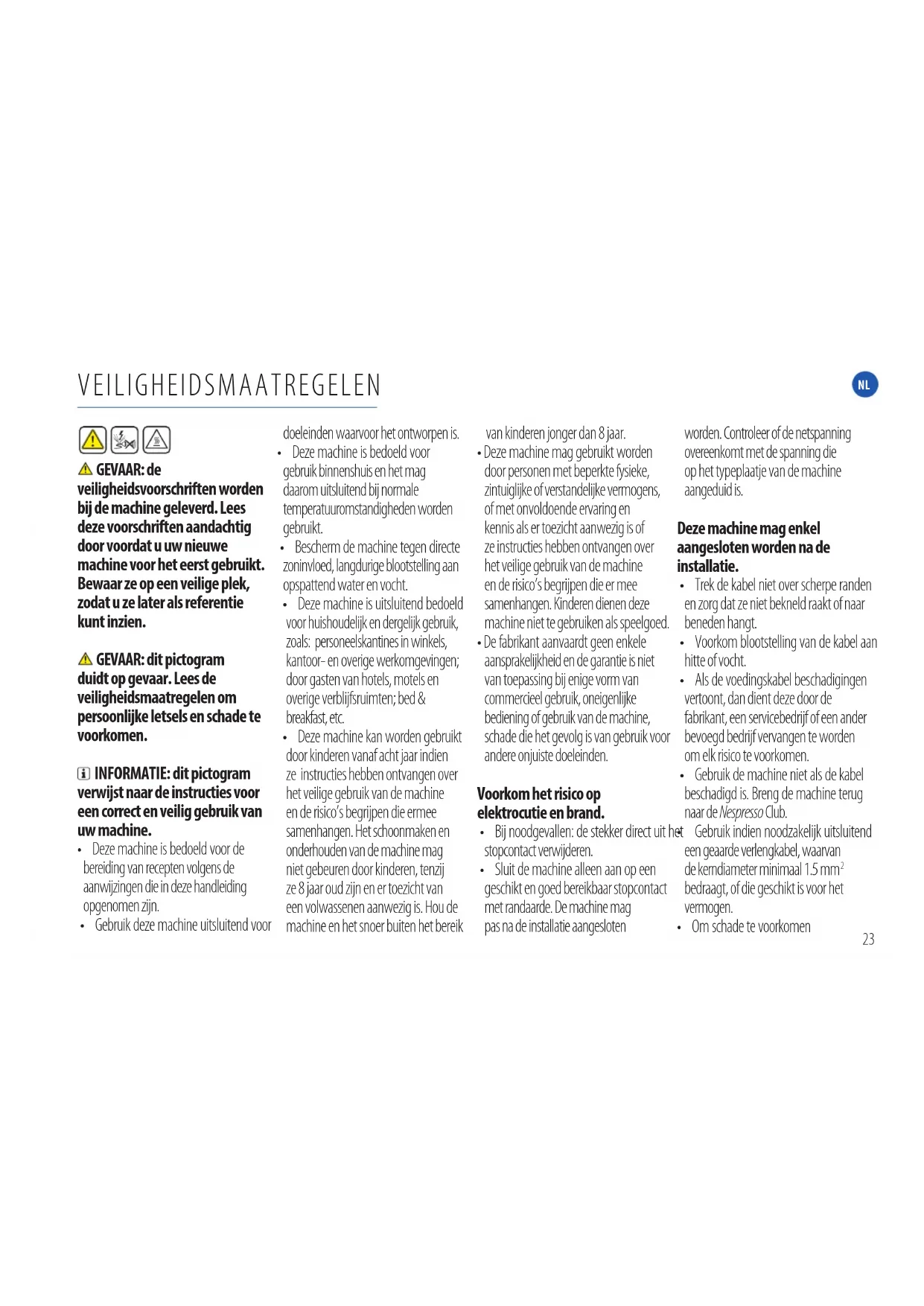 hun recht te laten komen, met een intense body en een ongeëvenaard stevige en romige crema als eindresultaat.VEILIGHEIDSMAATREGELEN GEVAAR: de