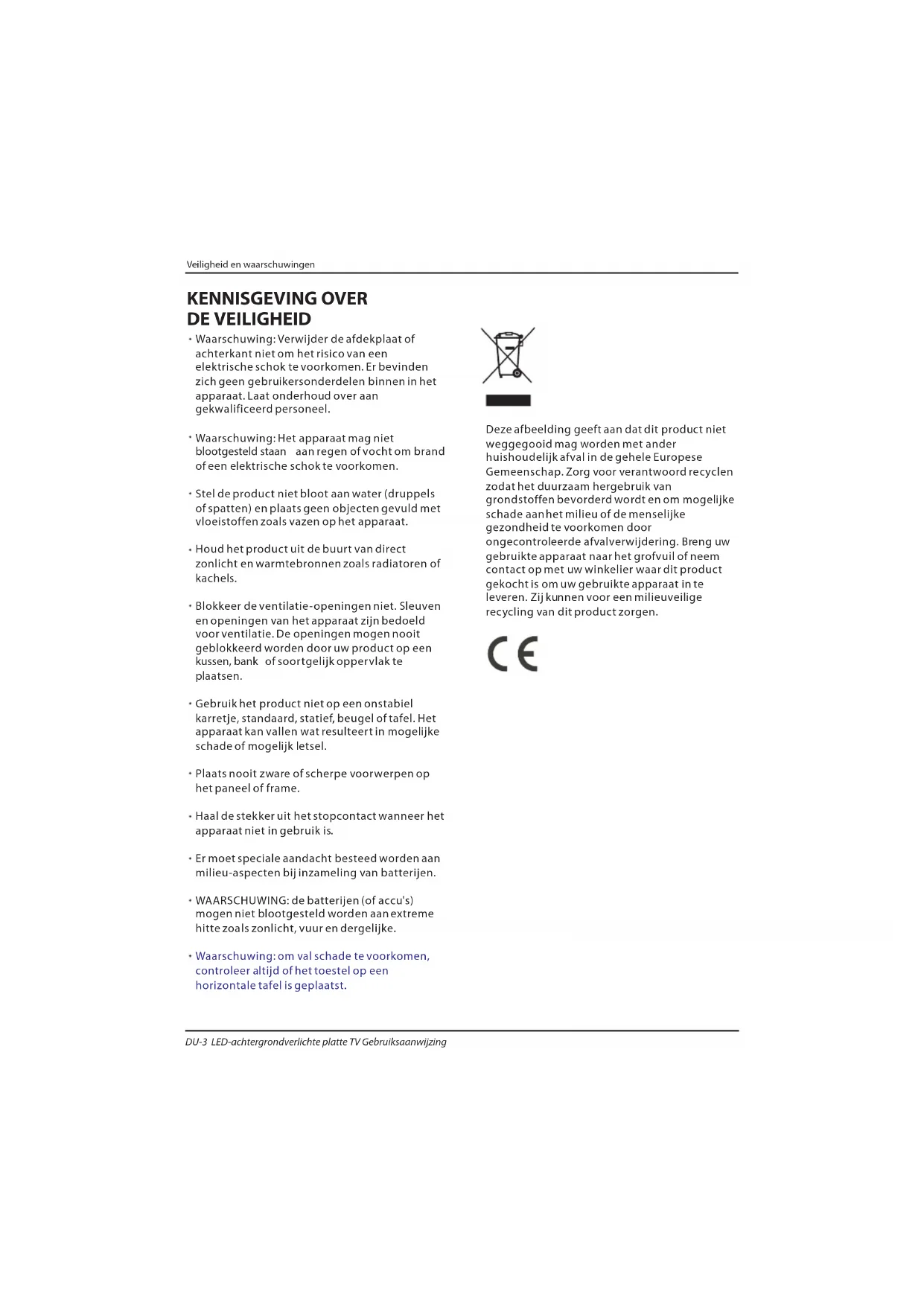 DU-27 LED-achtergrondverlichte platte TV GebruiksaanwijzingSpecificatie