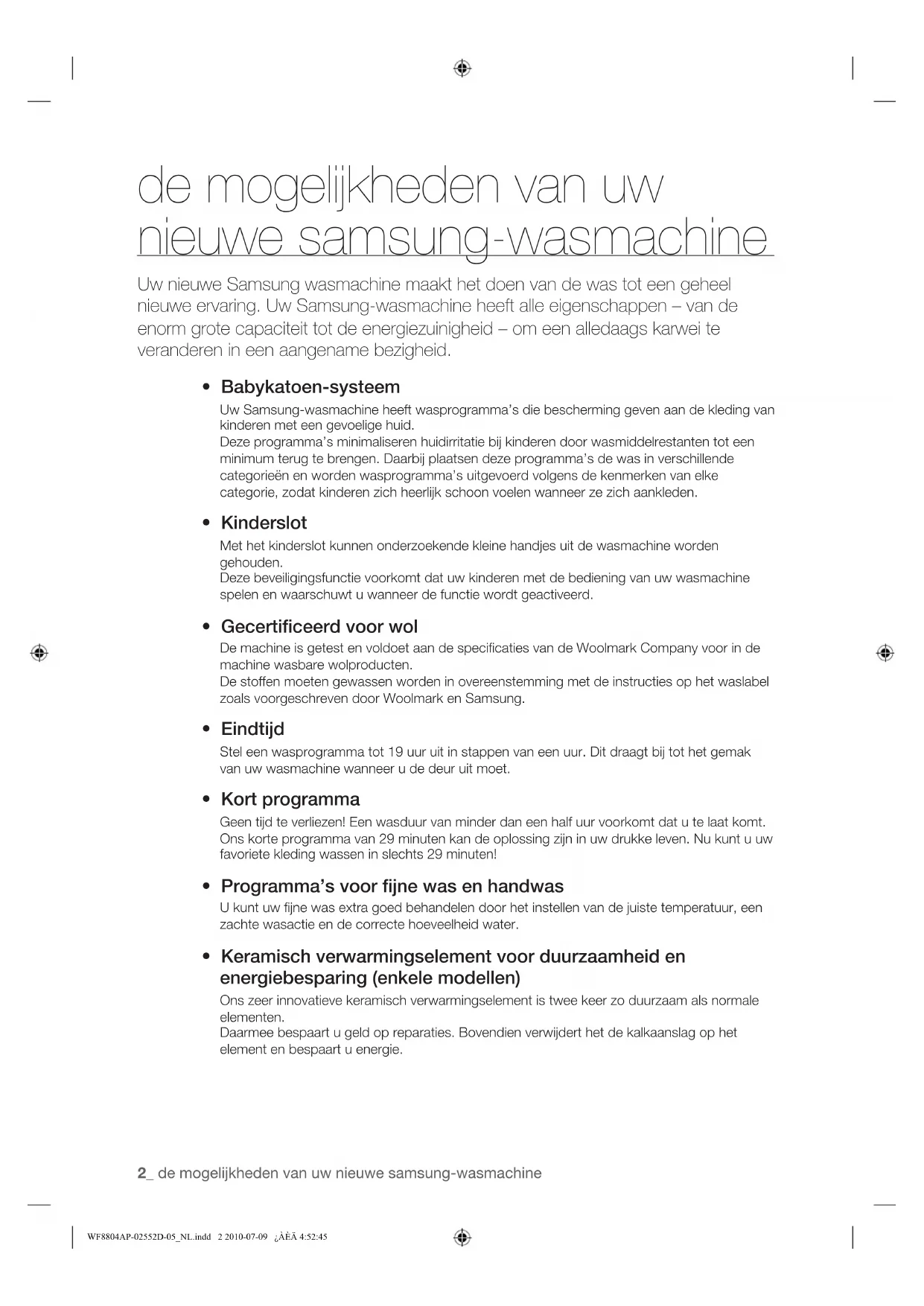 WF8804AP-02552D-05_NL.indd 1 2010-07-09 ¿ÀÈÄ 4:52:452_ de mogelijkheden van uw nieuwe samsung-wasmachine