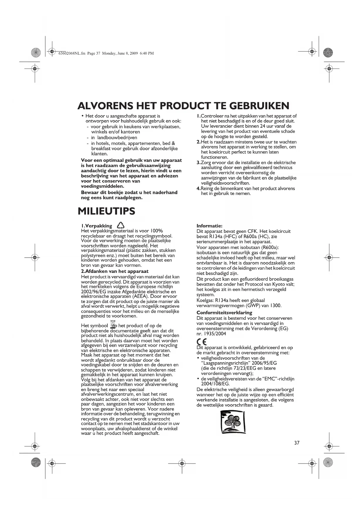 ALVORENS HET PRODUCT TE GEBRUIKEN MILIEUTIPS
