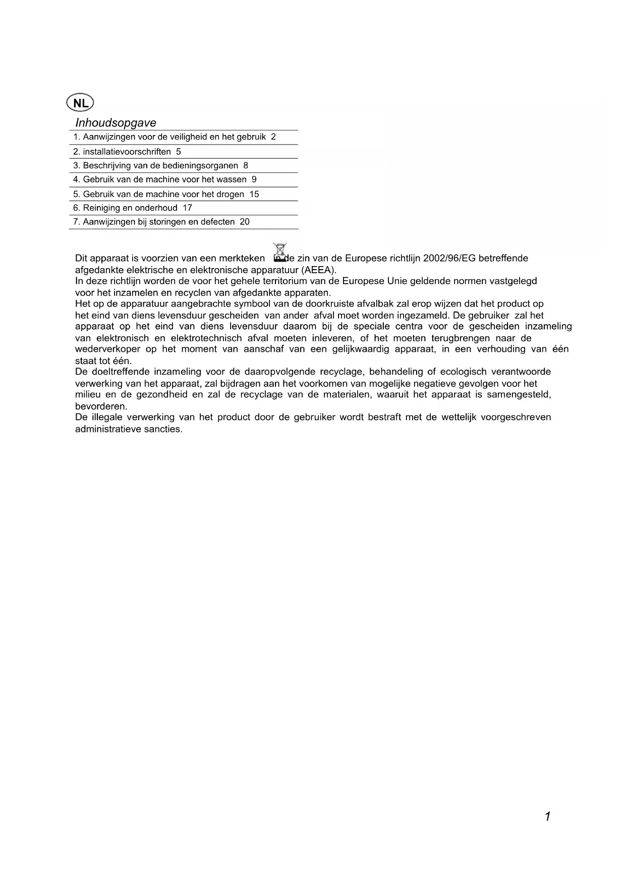 1. Aanwijzingen voor de veiligheid en het gebruik 2