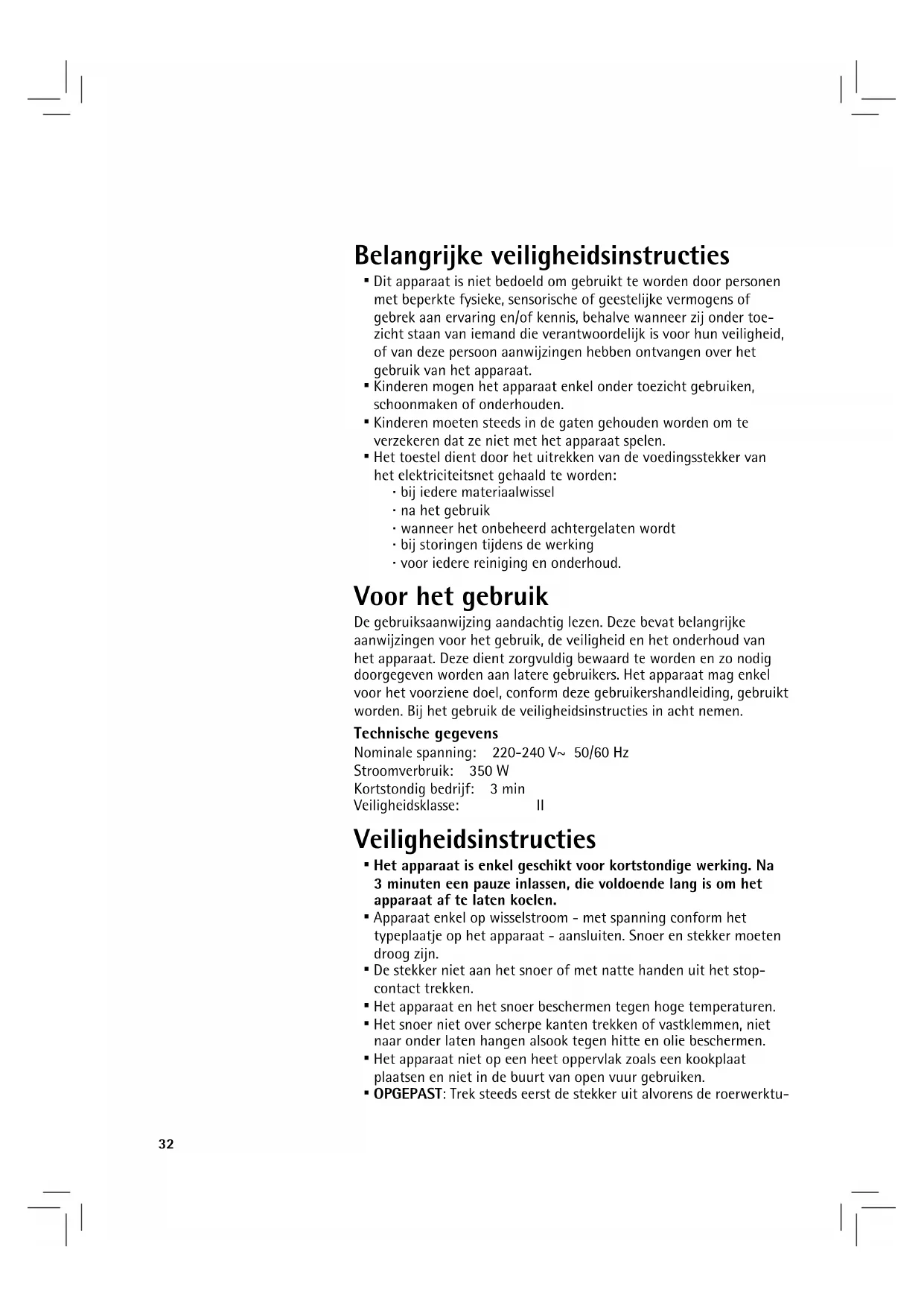 Stroomverbruik: 350 W Kortstondig bedrijf: 3 min