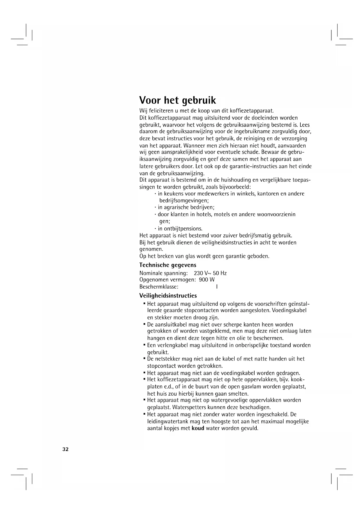 Dit koffiezetapparaat mag uitsluitend voor de doeleinden worden