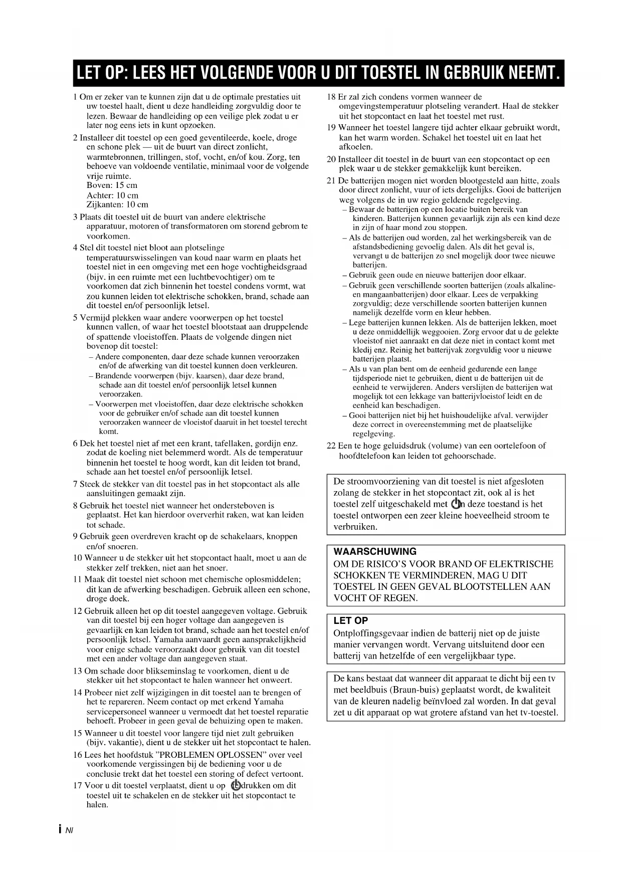 15 Wanneer u dit toestel voor langere tijd niet zult gebruiken