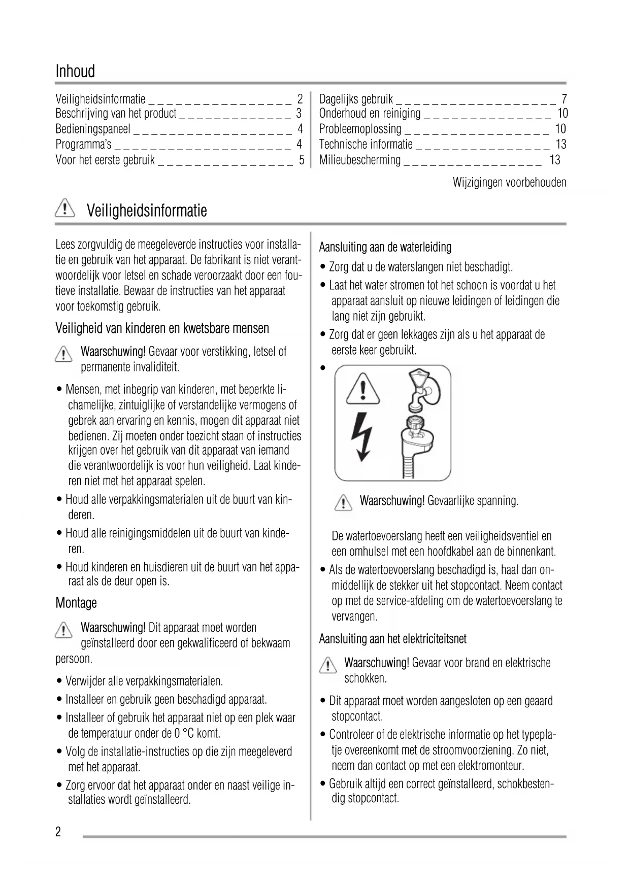 • Vaatwasmiddel is gevaarlijk. Volg de veiligheidsin-