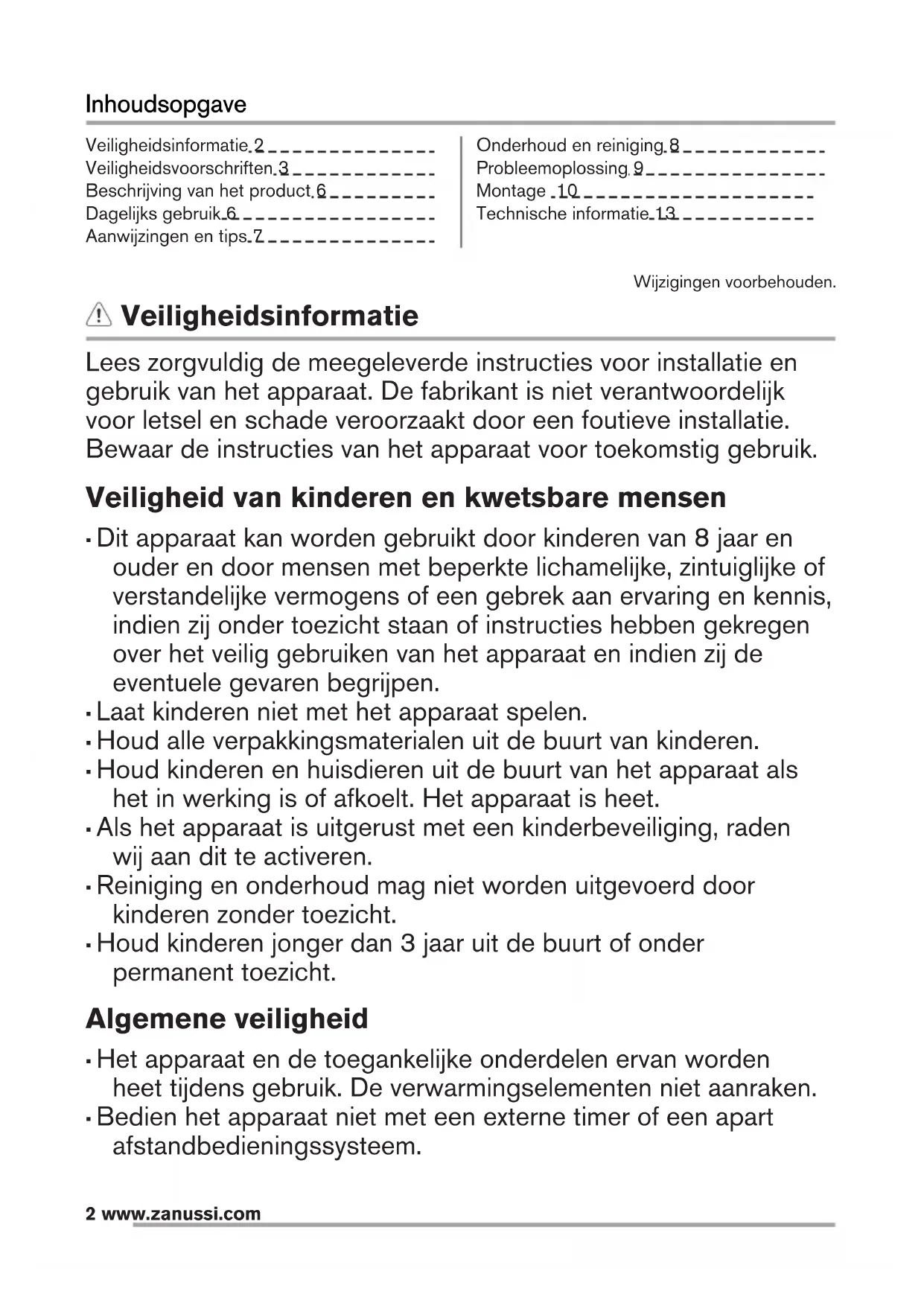 www.zanussi.com 11WAARSCHUWING!