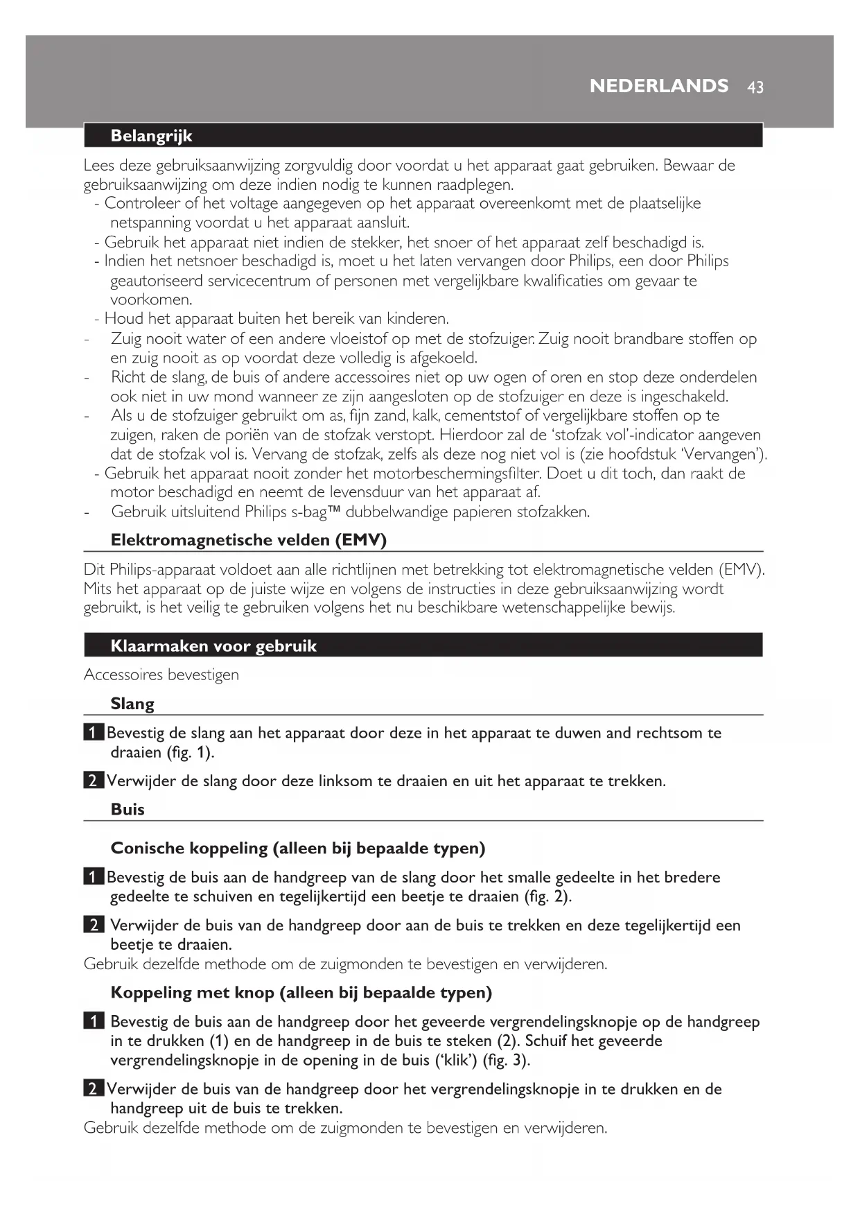 - Gebruik uitsluitend Philips s-bag` dubbelwandige papieren stofzakken.