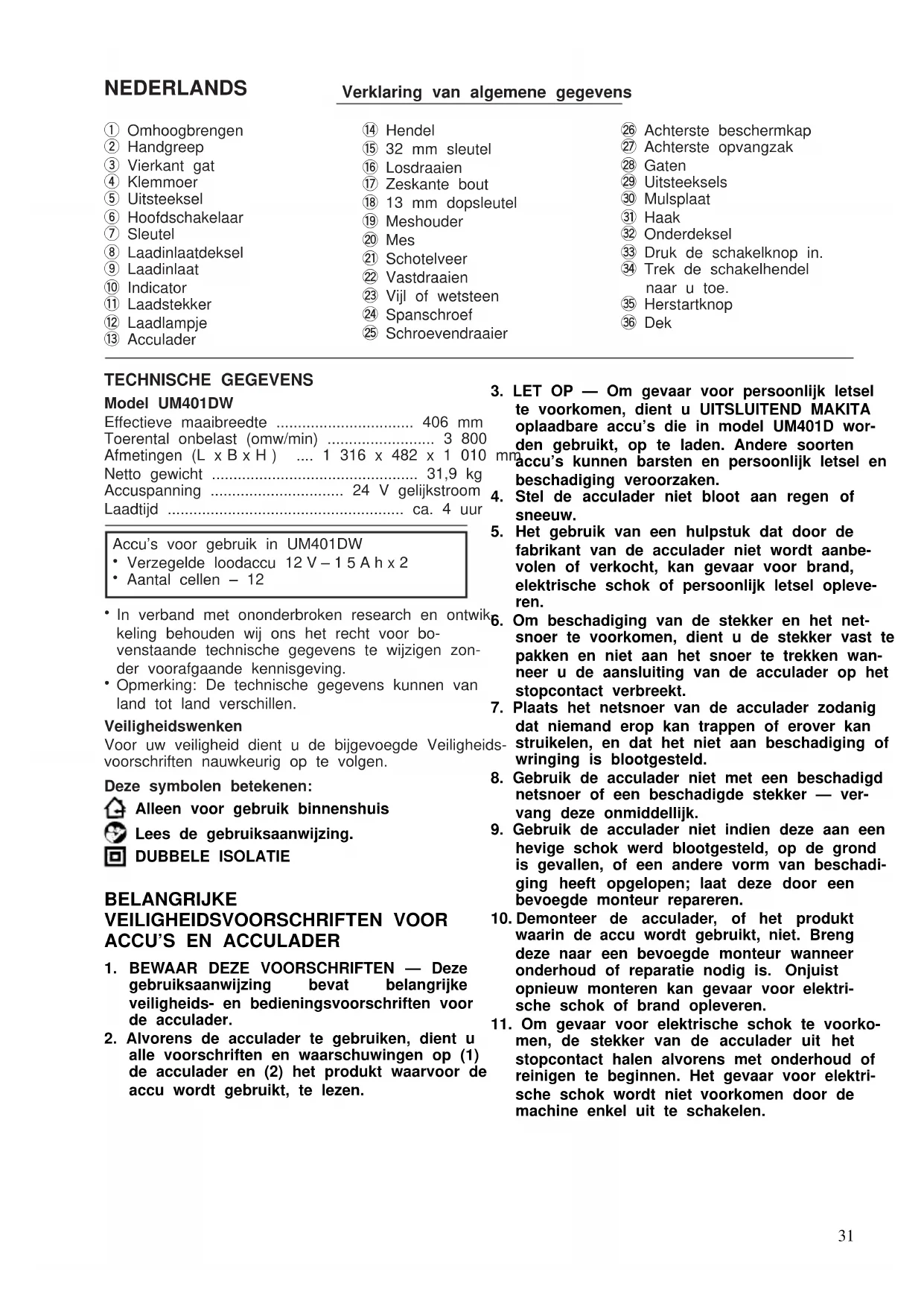 31AANVULLENDE VEILIGHEIDSVOORSCHRIFTEN VOOR ACCU’S IN DE GAZONMAAIER