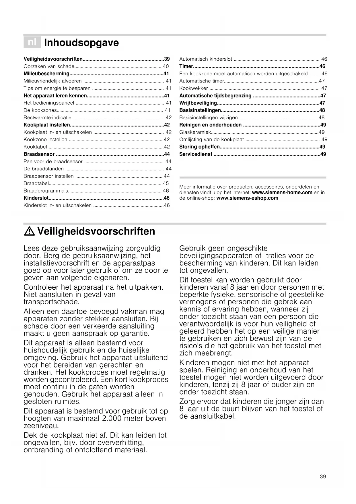 é Inhoudsopgave [nl]Gebruiksaanwijzing Veiligheidsvoorschriften39