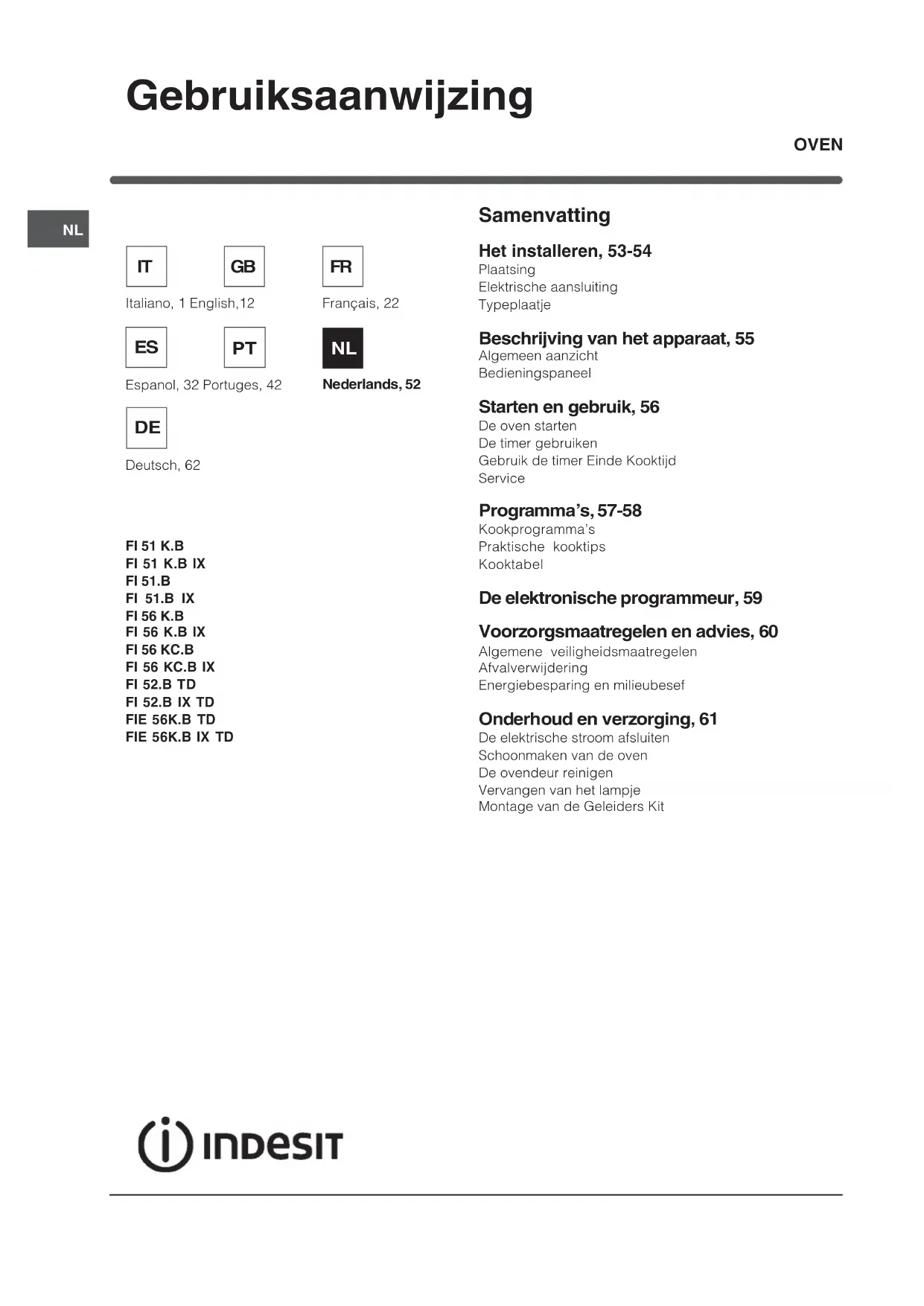 Vind de handleiding van het apparaat gratis FIE 56 KB BK INDESIT in PDF-formaat.