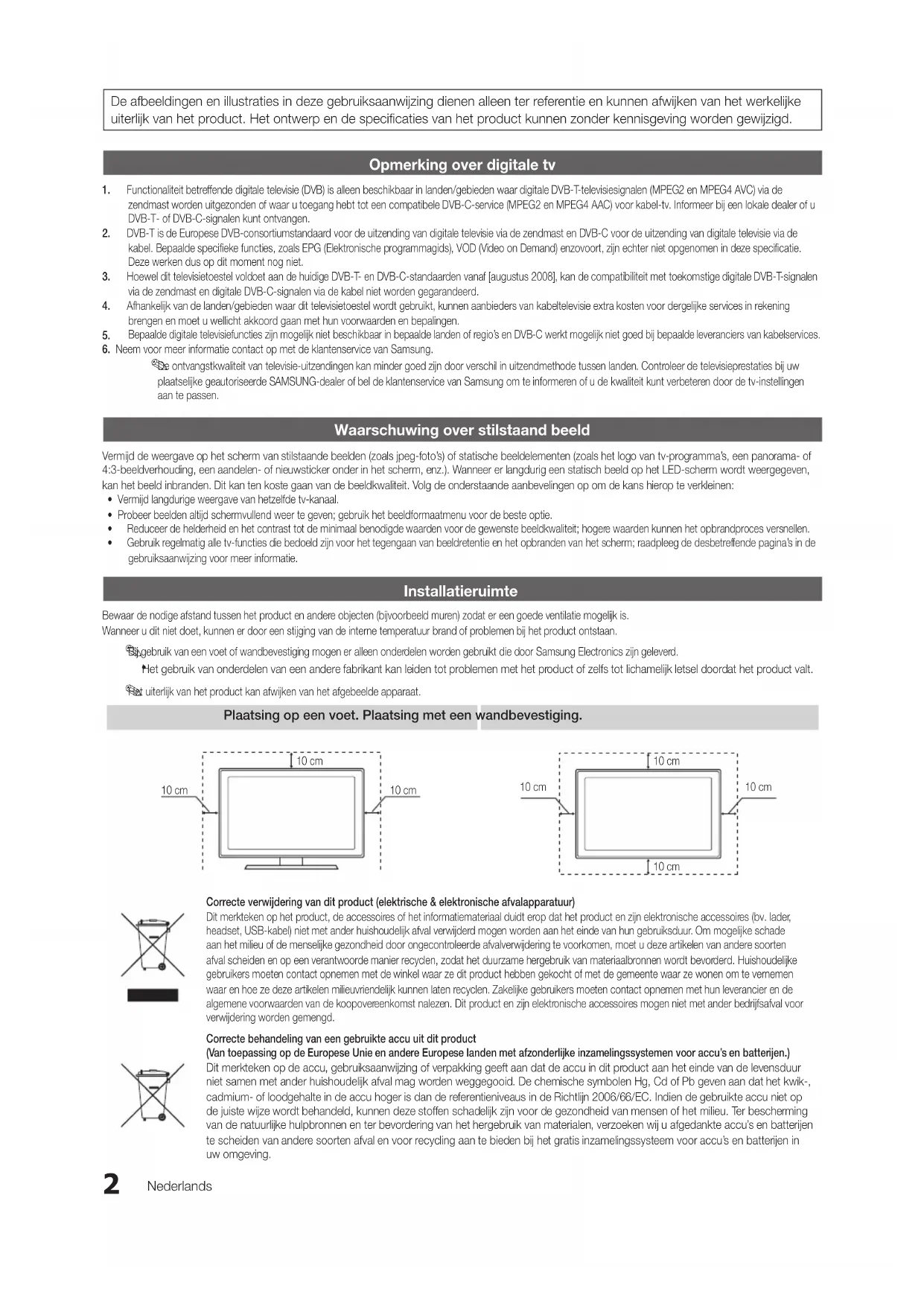 3. Hoewel dit televisietoestel voldoet aan de huidige DVB-T- en DVB-C-standaarden vanaf [augustus 2008], kan de compatibiliteit met toekomstige digitale DVB-T-signalen